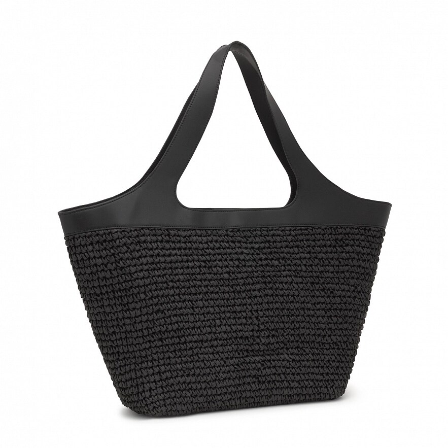 Сумка TOUS Lirio Rafia большая, из рафии черного цвета, с деталями из полиуретана. Застежка на магнитной кнопке. Фиксированные ручки, регулируемый и съемный ремень через плечо. Размеры (высота x ширина x глубина): 32 x 58 x 14 см.