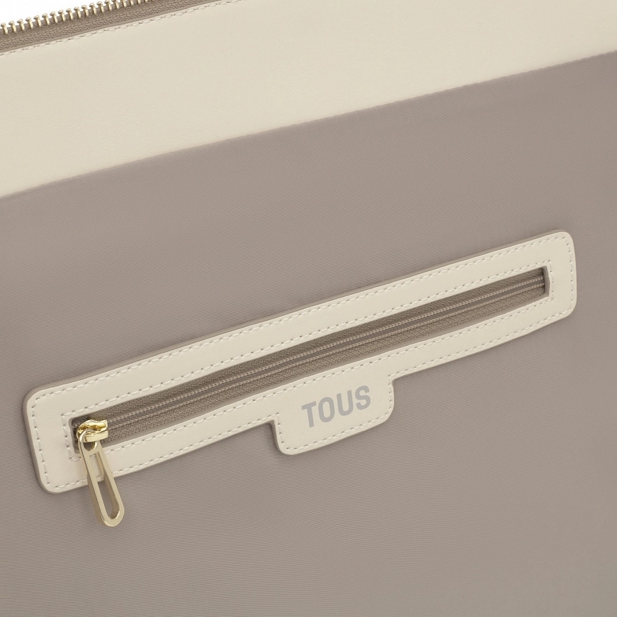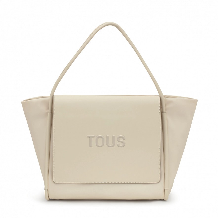 Сумка TOUS Silhouette Soft большая, мягкая, бежевого цвета. Застежка на молнию. Спереди карман с клапаном на магнитных кнопках. Фиксированные плечевые ремни. Размеры (высота х ширина х глубина): 27 х 54 х 30 см.