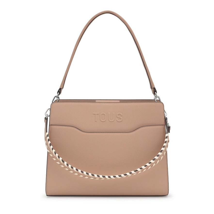 Сумка TOUS Audree Saffiano среднего размера из полиуретана пудровового цвета. Магнитное закрытие. Два отделения, разделенные одним на молнии. Внутренний карман и внешний карман открываются. Два съемных плечевых ремня. Размеры (высота х ширина х глубина): 25 х 33,5 х 12,5 см.