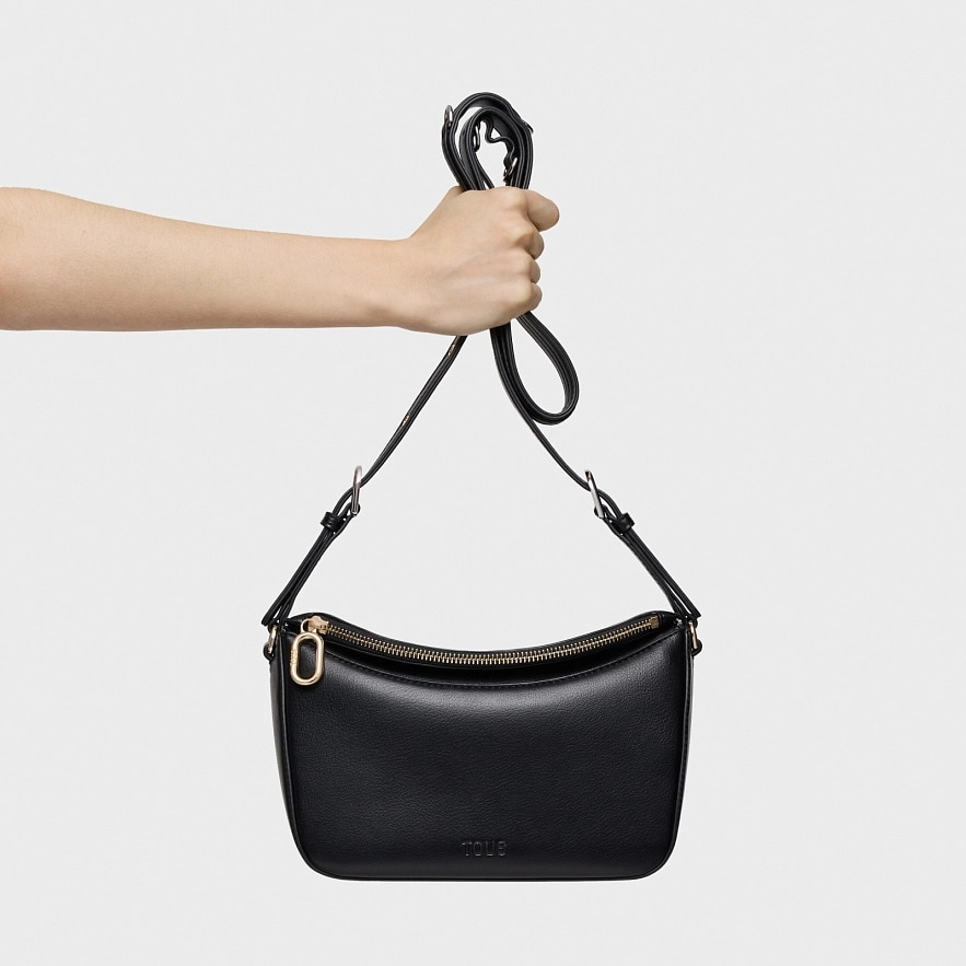 Сумка TOUS City через плечо из черного полиуретана. Магнитная застежка. Один внешний карман на молнии и один внутренний карман на молнии. Регулируемый ремень через плечо. Размеры (высота x ширина x глубина): 16 x 26 x 12 см.