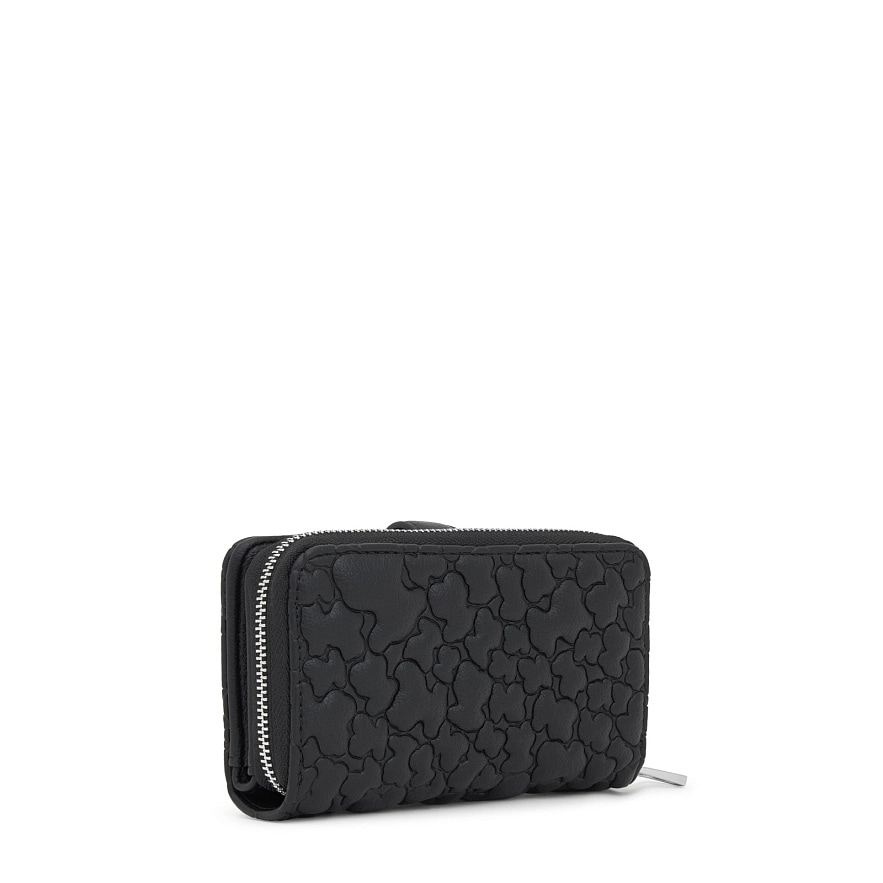 Кошелек TOUS Puffy Bear из черного полиуретана. Застегивается на кнопку и молнию. Внутри имеет отделение для купюр, восемь слотов для карт и два отделения для монет. Размеры (высота х ширина х глубина): 9 х 13,5 х 3 см.