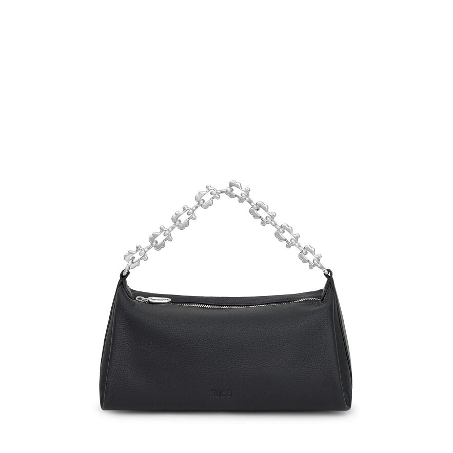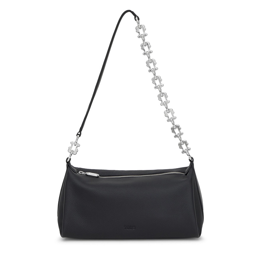 Сумка TOUS Fold из черной коровьей кожи с сертификатом LWG . Застежка-молния. Внутренний карман на молнии. Регулируемый ремень через плечо. Размеры (высота х ширина х глубина): 18 x 34 x 15 см.