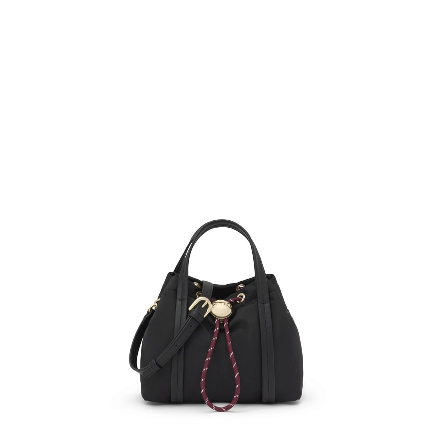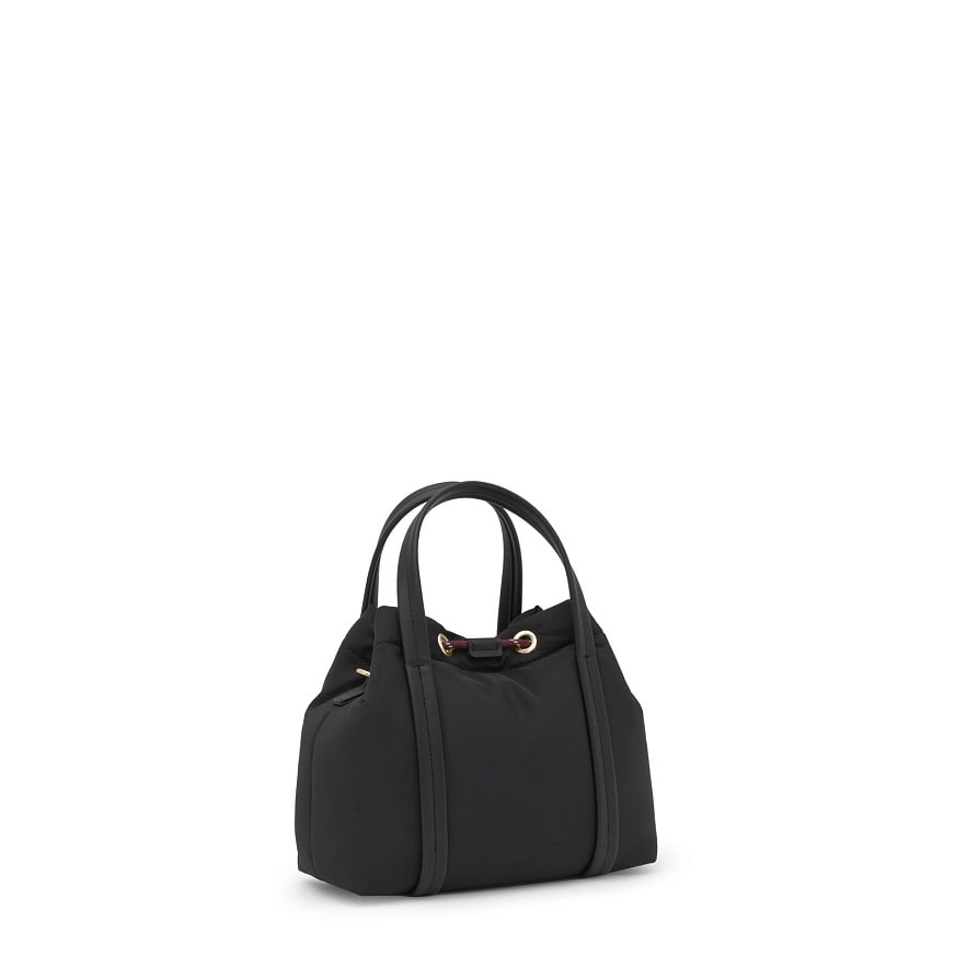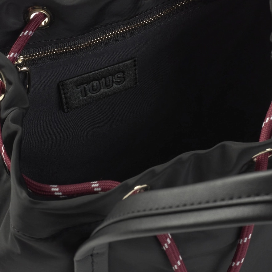 Сумка TOUS Empire Soft из переработанного полиэстера с черной полиуретановой отделкой. Регулируемая застежка на шнурке. Имеет внутренний карман. Фиксированные ручки и регулируемый и съемный ремень через плечо. Размеры (высота x ширина x глубина): 21 x 24 x 10 см.