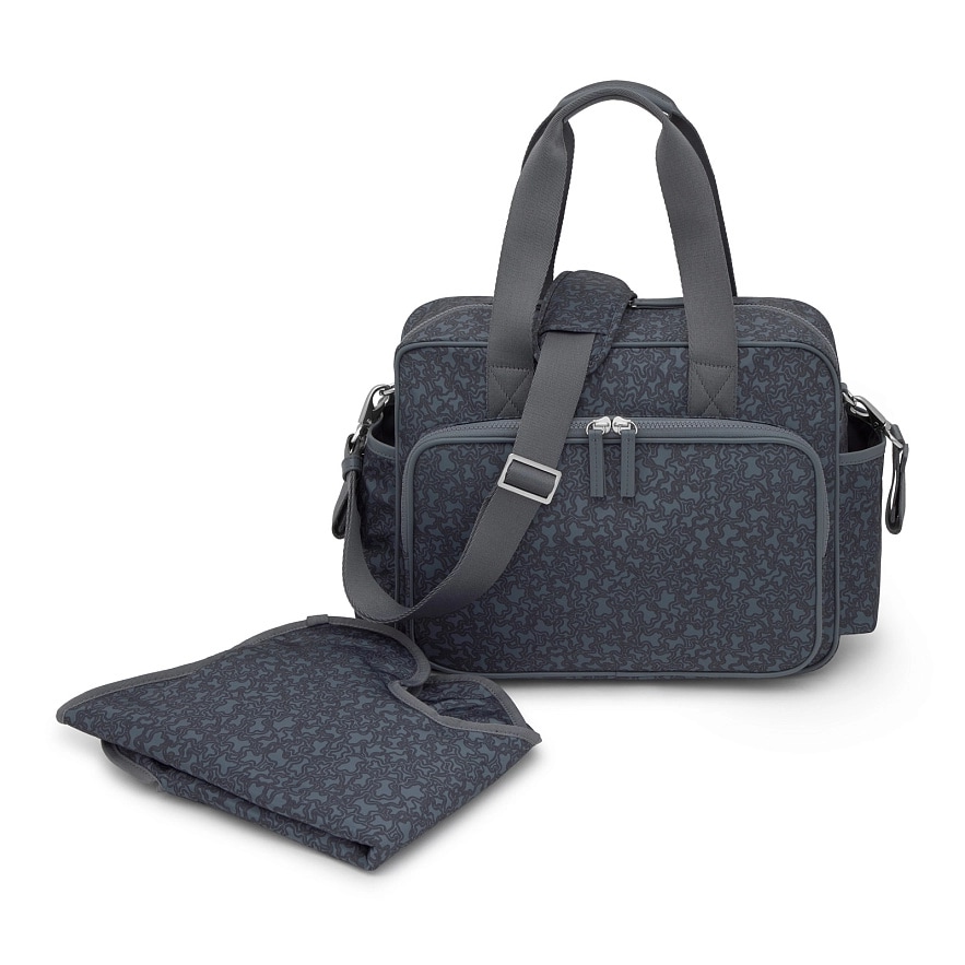 Сумка TOUS Kaos Mini Lines из полиэстера с серой отделкой. Застегивается на молнию. Внешний карман спереди на молнии и два открытых кармана на боку. Внутренний карман на молнии. Фиксированные плечевые ремни, регулируемый и съемный ремень через плечо и два съемных ремня для коляски. Размеры (высота х ширина х глубина): 27 х 43 х 17 см.