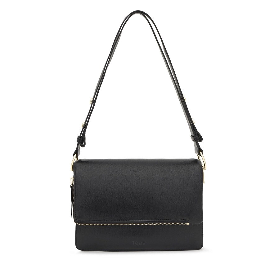 Сумка TOUS Audree Soft из полиуретана черного цвета через плечо. Имеет клапан и застежку с двумя магнитными кнопками. Имеет два отделения, разделенных между собой застежкой-молнией, и открытый карман спереди. Регулируемый ремень через плечо. Размеры (высота x ширина x глубина): 17 x 25 x 10 см.