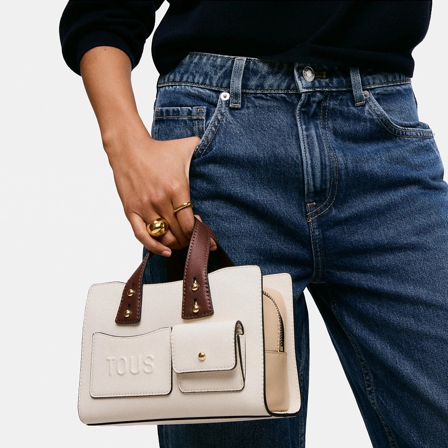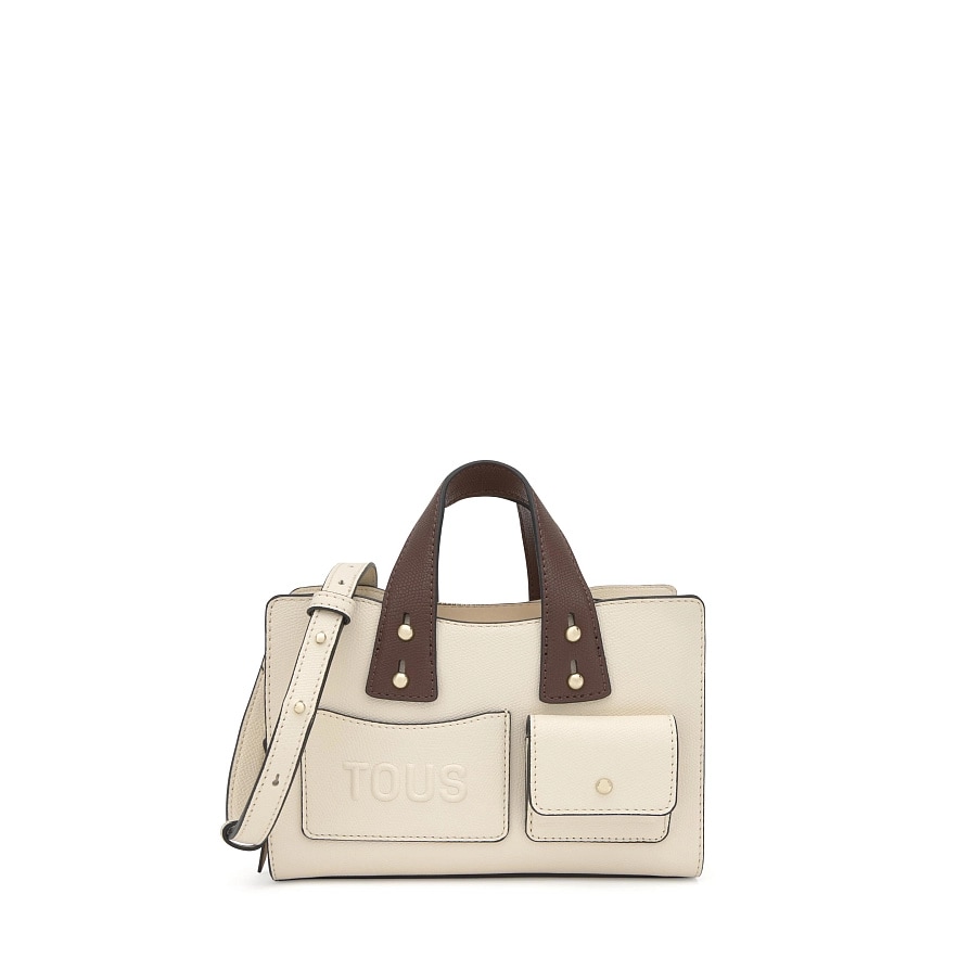 Сумка TOUS Back to basic из полиуретана бежевого и коричневого цветов. Застежка-молния. Открытый внутренний карман. Два внешних кармана. Фиксированные плечевые ремни и регулируемый и съемный плечевой ремень. Размеры (высота x ширина x глубина): 14,4 x 22 x 9 см.
