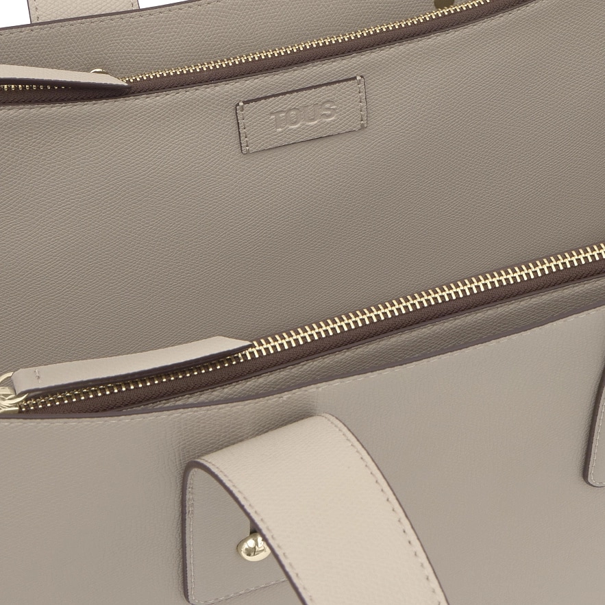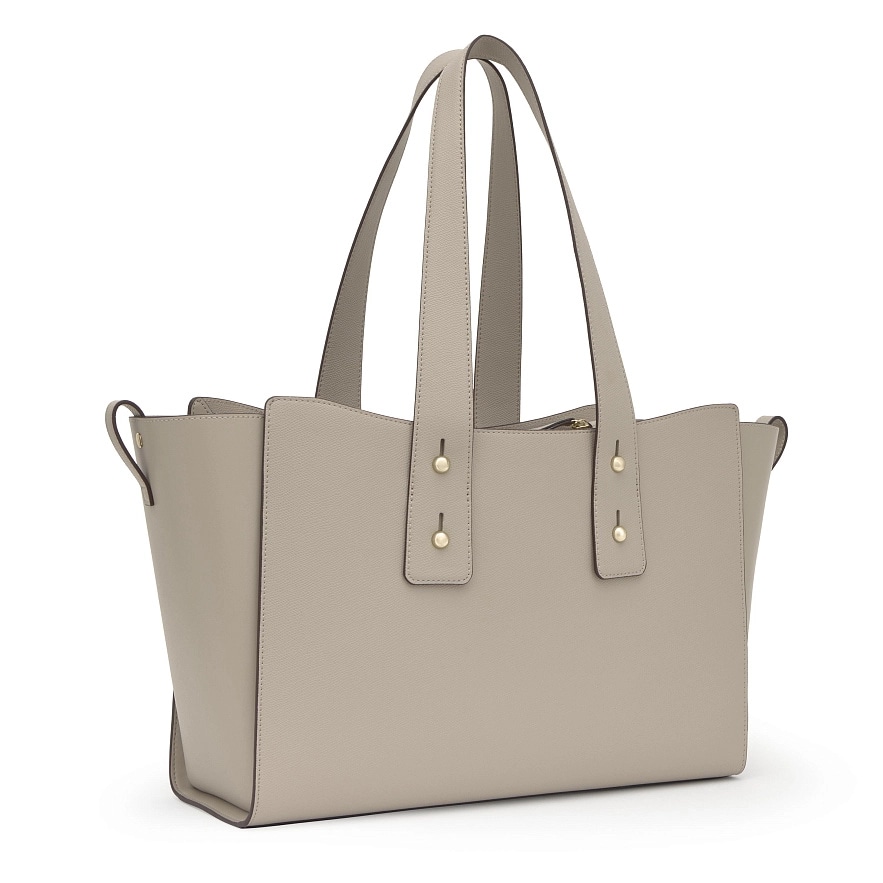 Сумка Back to basics из полиуретана серого цвета, большого размера. Застежка с центральным карабином. Внутренний карман на молнии. Фиксированный ремень через плечо. Размеры (высота x ширина x глубина): 17 x 47 x 28 см.