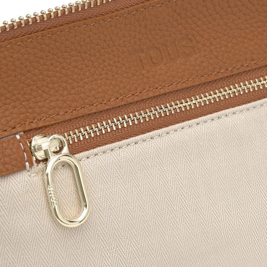 Сумка TOUS Hold через плечо из кожи с сертификатом LWG цвета кемел. Застежка-молния. Внутренний карман на молнии. Фиксированный ремень через плечо и регулируемый ремень через плечо. Размеры (высота x ширина x глубина): 16,5 x 23 x 7 см.