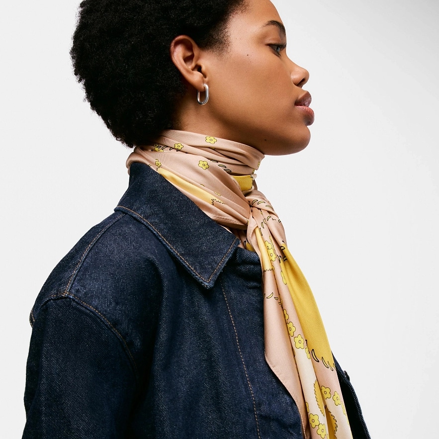 Платок TOUS Motifs Paisley квадратный, песочного цвета. Размеры: 120 x 120 см. Состав: 55% шелк, 45% хлопок.