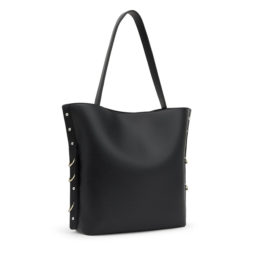 Сумка большого размера TOUS Jewelry Studs из полиуретана черного цвета. Магнитная застежка. Открытый внутренний карман. Фиксированные плечевые ремни. Размеры (высота х ширина х глубина): 35 х 40 х 11 см.