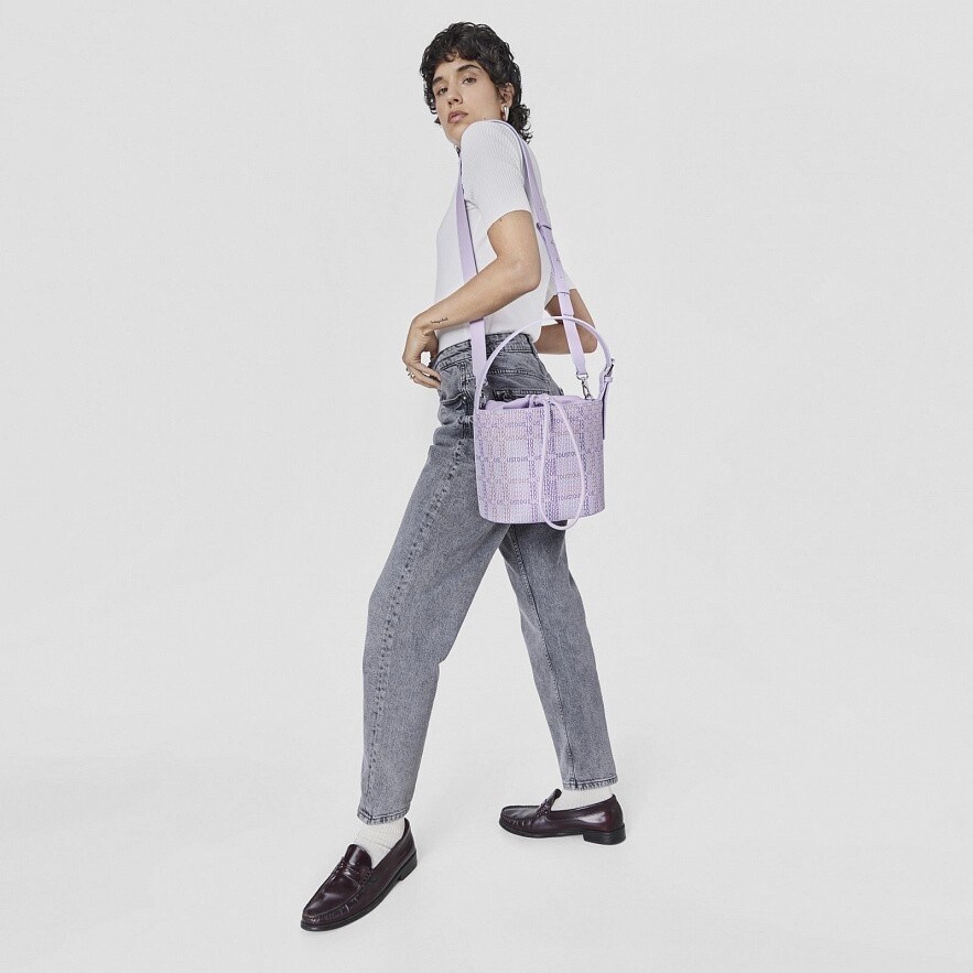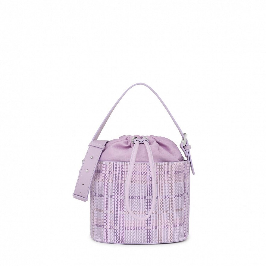 Сумка-ведро TOUS Cecilia с лиловым принтом в сочетании с отделкой из искусственной кожи. Регулируемое закрытие шнура. Регулируемый плечевой ремень и регулируемый съемный ремень через плечо. Размеры (высота х ширина х глубина): 20 х 23 х 15 см.