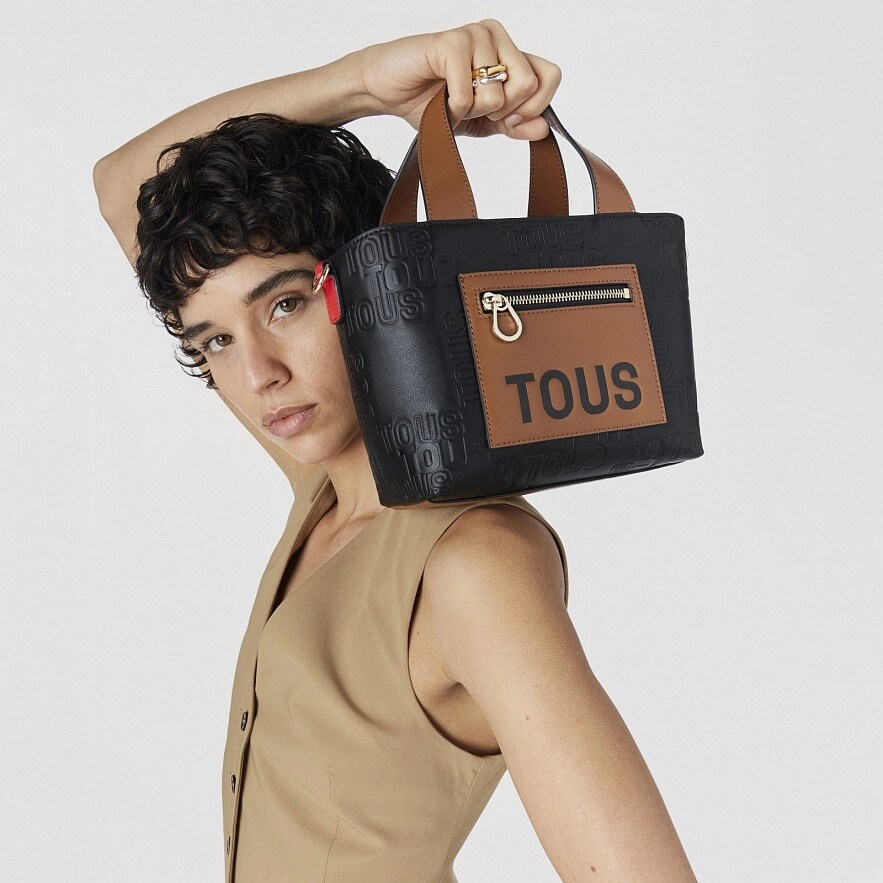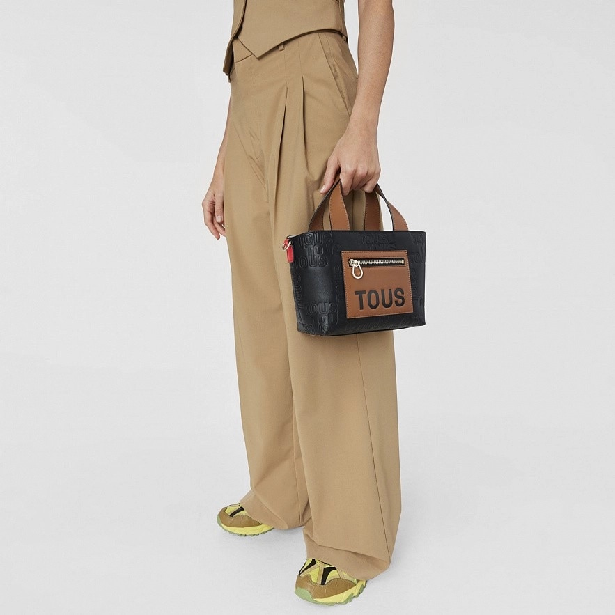 TOUS Nanda маленькая сумка из искусственной кожи черного и коричневого цветов. Застежка-молния. Открытый передний карман и другой карман на молнии. Открытый внутренний карман. Фиксированные ручки и регулируемый и съемный ремень через плечо. Размеры (высота х ширина х глубина): 17,5 х 29 х 10 см.