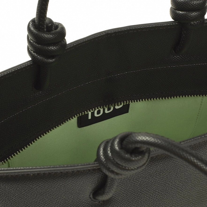 Сумка TOUS La Rue New Tote из искусственной кожи черного цвета. Застежка-молния. Имеет один открытый карман внутри. Фиксированная ручка и регулируемый и съемный ремень через плечо. Размеры (высота х ширина х глубина): 21 х 31 х 15,5 см.