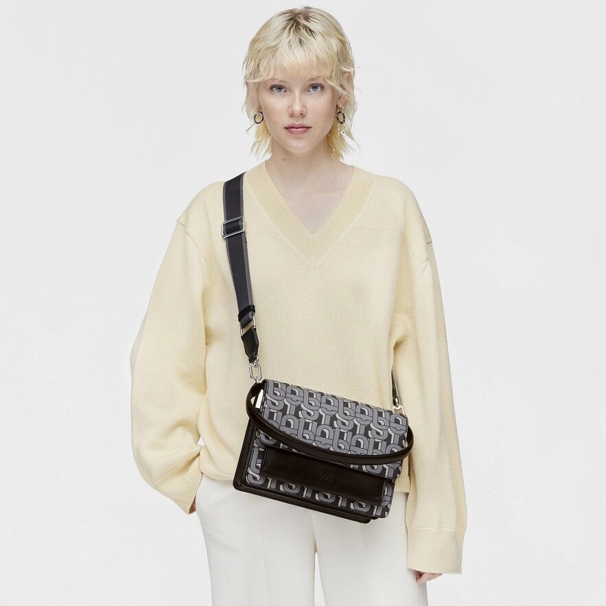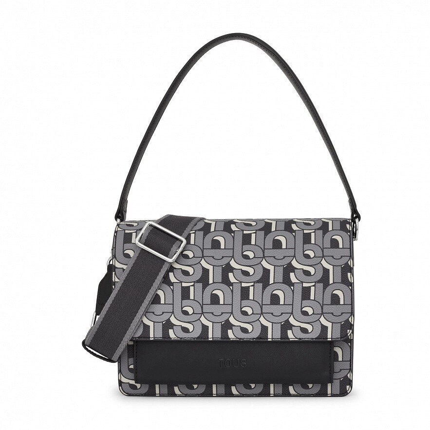 Сумка TOUS Manifesto Audree среднего размера через плечо из искусственной кожи с черным принтом. Две магнитные кнопки. Открытый внешний карман. Внутри два отделения, разделенных карманом на молнии. Фиксированный плечевой ремень и регулируемый съемный ремень через плечо. Размеры (высота х ширина х глубина): 20 х 25 х 12 см.