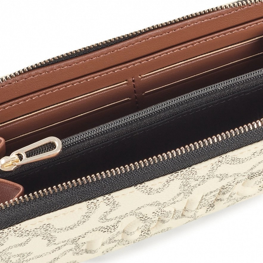 Кошелек TOUS Kaos Icon из искусственной кожи с бежево-серым принтом Kaos. Застежка-молния. Внутри имеет карман на молнии для монет, восемь слотов для карточек и четыре открытых отделения для купюр. Размеры (высота х ширина х глубина): 10,5 х 19,5 х 2,8 см.