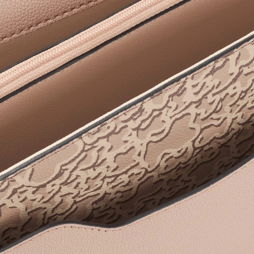 Сумка Kaos Mini Evolution Audree среднего размера из искусственной кожи с принтом Kaos пудрового цвета. Две магнитные кнопки. Открытый внешний карман. Внутри два отделения, разделенных карманом на молнии. Фиксированный плечевой ремень и регулируемый съемный ремень через плечо. Размеры (высота х ширина х глубина): 20 х 25 х 12 см.