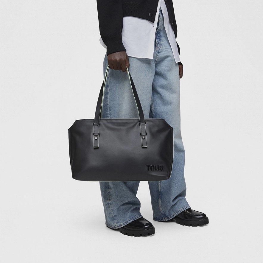 Сумка TOUS Candy большого размера из кожи черного цвета с сертификатом LWG . Застежка-молния. Открытый внутренний карман. Фиксированный плечевой ремень. Размеры (высота х ширина х глубина): 26 х 45 х 17 см.