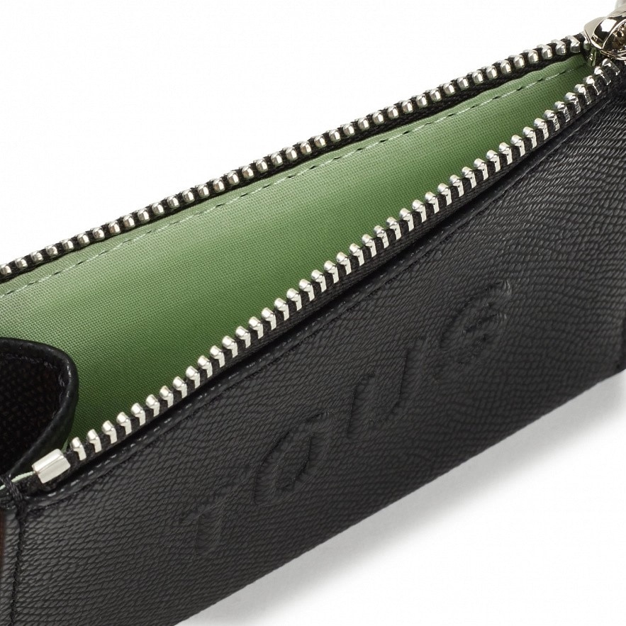 Кошелек TOUS La Rue New из черной искусственной кожи. Специальное отделение для монет с застежкой-молнией. На тыльной стороне есть три слота для карточек, один из которых прозрачен. Размеры (высота х ширина х глубина): 8,5 х 11,7 х 1,5 см.