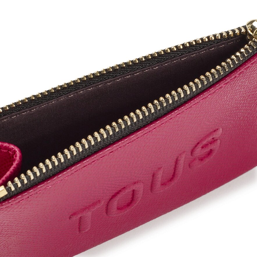 Кошелек TOUS La Rue New из искусственной кожи цвета фуксии. Специальное отделение для монет на молнии. Имеет три слота для карт на тыльной стороне, один из которых прозрачный. Размеры (высота х ширина х глубина): 8,5 х 11,7 х 1,5 см.