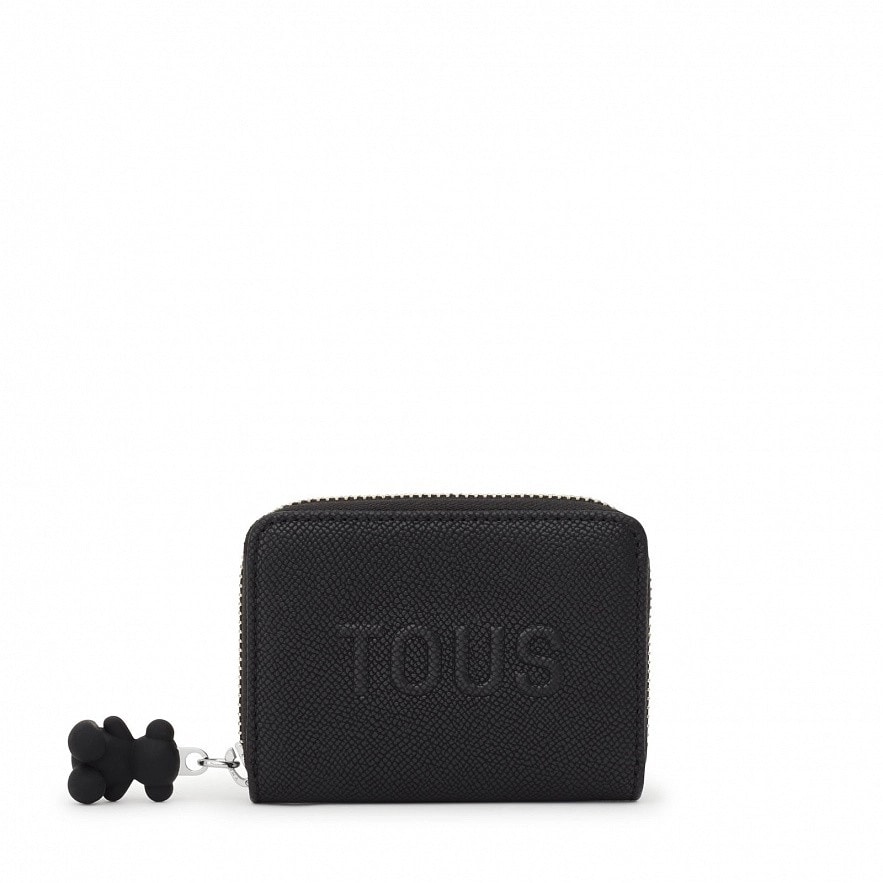 Кошелек TOUS La Rue New из черной искусственной кожи. Имеет три открытых отделения для монет и два слота для карточек. Застежка-молния. Размеры (высота х ширина х глубина): 8 х 11 х 3 см.
