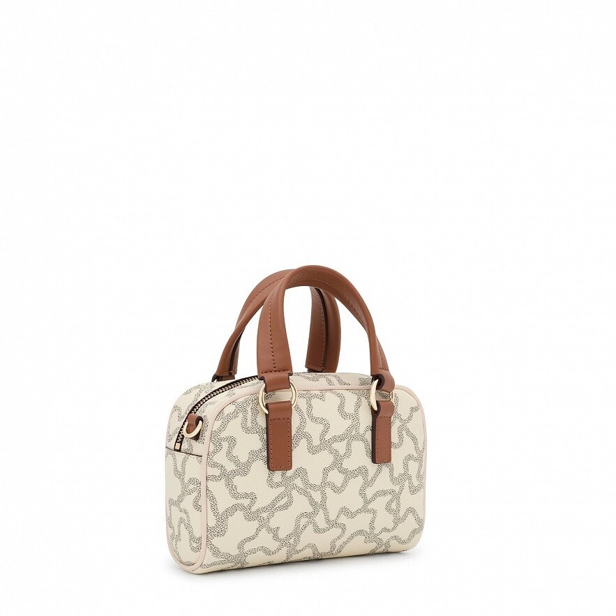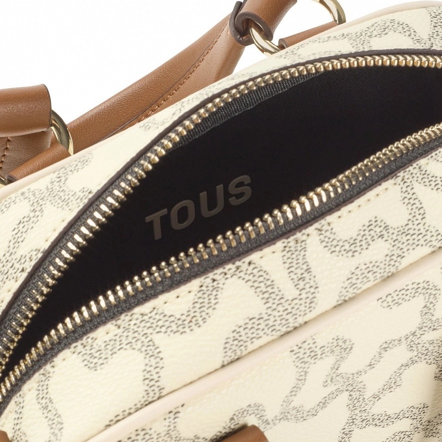 Сумка TOUS Kaos Icon бежевого цвета с принтом Kaos из искусственной кожи. Застежка-молния. Фиксированные ручки и регулируемый, съемный ремень через плечо. Размеры (высота х ширина х глубина): 14 х 19 х 7 см.