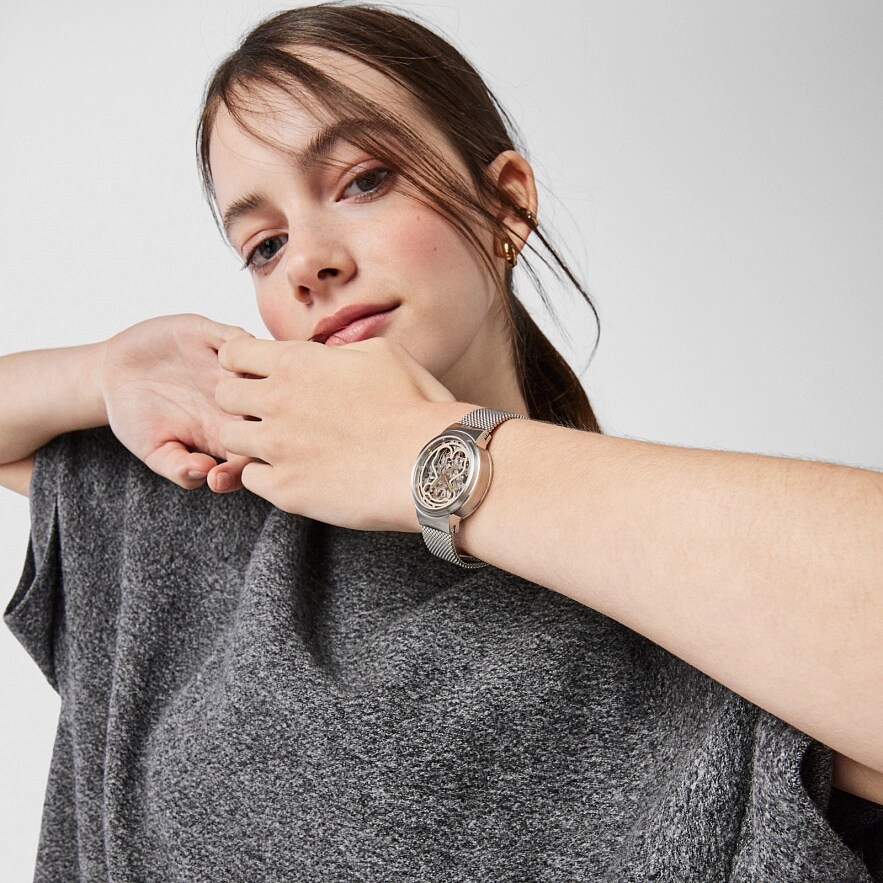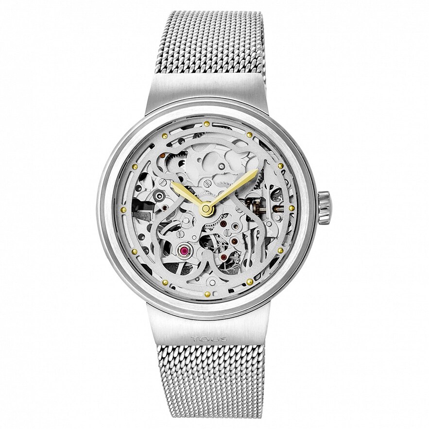 Часы TOUS с круглым циферблатом из нержавеющей стали серого цвета с автоматическим механизмом, с сапфировым стеклом, ремешок из нержавеющей стали серебристого цвета, водонепроницаемость до 5 АТМ