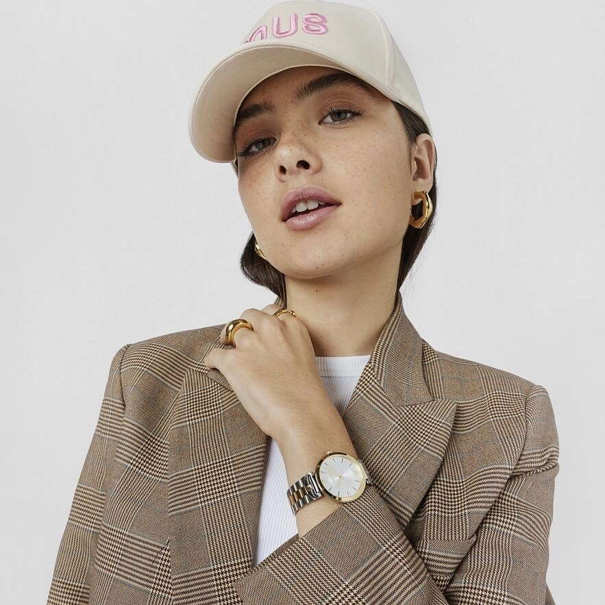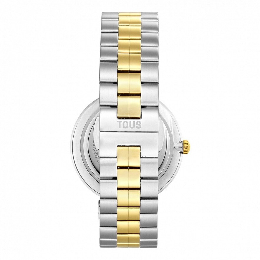 Аналоговые часы TOUS S-Band с браслетом из стали IPG 316L цвета золота и стали диаметром 36 мм и металлическим циферблатом. Функции: часы и минуты. Водонепроницаемость при 3 атм. Батарея: 1,55 В, оксид серебра SR621SW / 0,30 грамм, японский кварцевый механизм. Откидная застежка с кнопками.