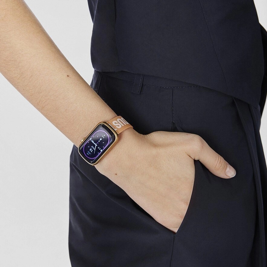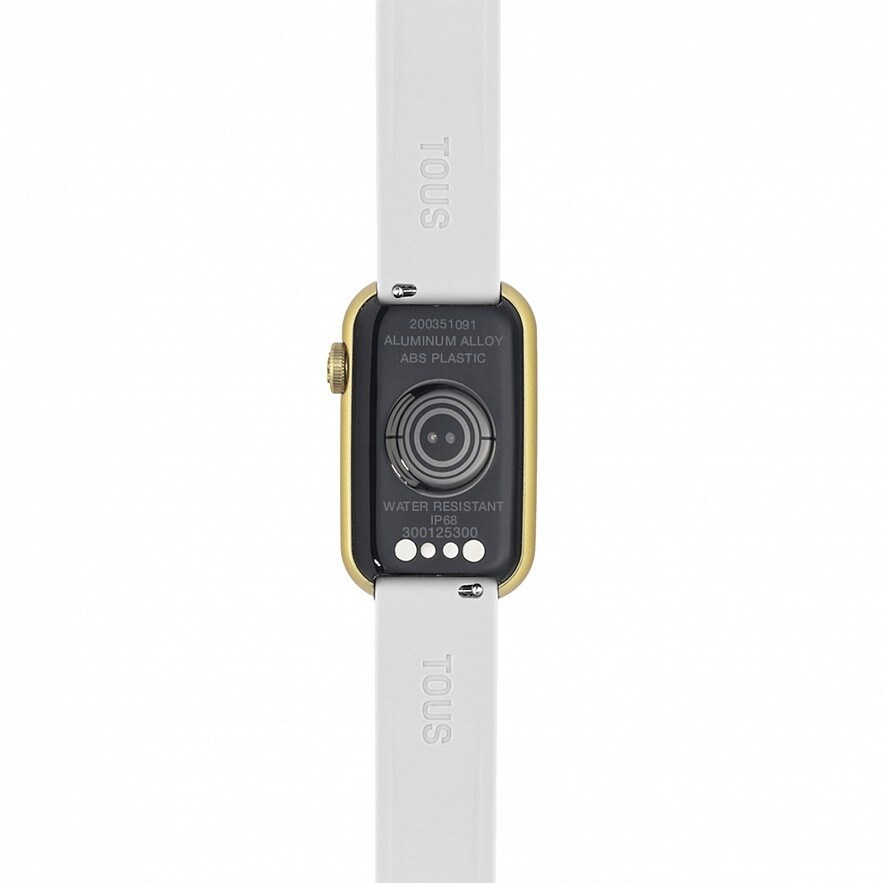 TOUS T-Band смарт-часы с двойным сменным ремешком и корпусом для ПК телесного цвета. Нейлоновый ремешок с застежкой-логотипом белого цвета на телесном фоне и силиконовый ремешок телесного цвета с изображением медведя. Совместимость: Android 7.0 и iOS 12.0 или выше. Дисплей / ЖК-дисплей: прямоугольный сенсорный экран размером 1,47 дюйма, цветной TFT-DLC (Full Touch). Операционная система: РТ ОС. Возможности подключения: Версия Bluetooth: BLE5.0. Оперативная память: 128 КБ, 64 МБ Flash ROM. Аккумулятор: 140 мАч, литий-ионный аккумулятор 3,8 В/2,9 г, перезаряжаемый с помощью магнитного кабеля, 5–7 дней работы и 8–10дней в режиме ожидания. Чипсет: Realtek RTL8762CK и частота сердечных сокращений: 3300 часов — ARM Cortex-M0 — скорость 53МГц. Водонепроницаемый: IP68. Функции: 5 циферблатов TOUS и один взаимозаменяемый в приложении TOUS WEAR, часы, минуты, месяц, день, день недели, ежедневная активность со счетчиком шагов, счетчик калорий и пройденное расстояние в милях или километрах, спорт (ходьба, бег, походы).