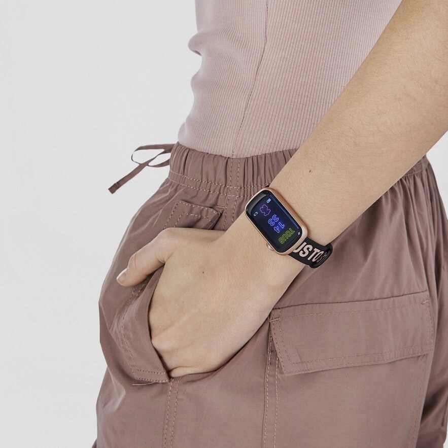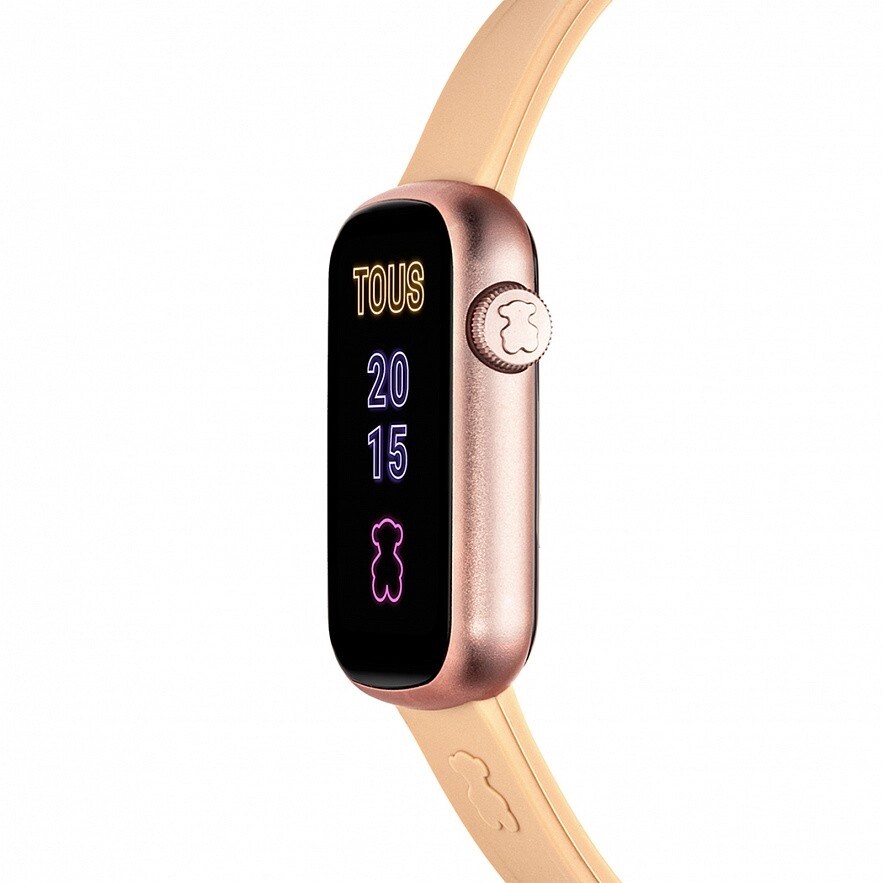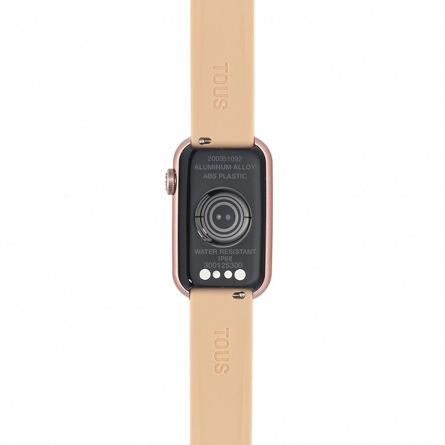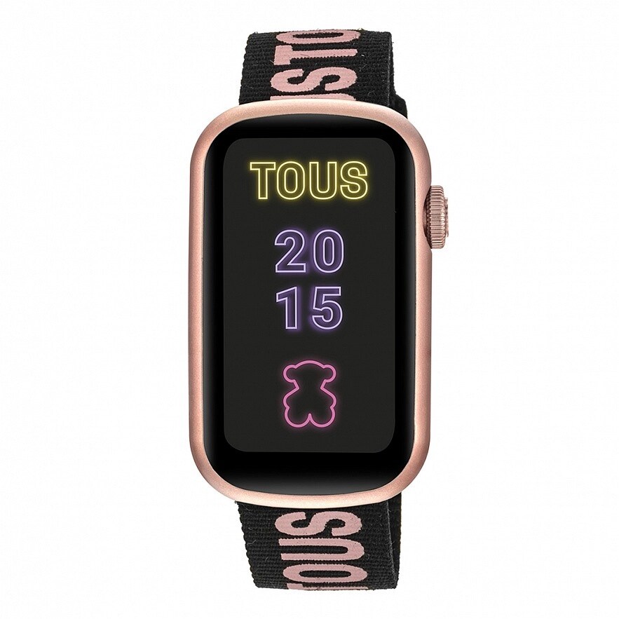 TOUS T-Band смарт-часы с двойным сменным ремешком и розовым корпусом для ПК. Нейлоновый ремешок с застежкой-логотипом розового цвета на черном фоне и бледно-розовый силиконовый ремешок с изображением медведя. Совместимость: Android 7.0 и iOS 12.0 или выше. Дисплей / ЖК-дисплей: прямоугольный сенсорный экран размером 1,47 дюйма, цветной TFT-DLC (Full Touch). Операционная система: РТ ОС. Возможности подключения: Версия Bluetooth: BLE5.0. Оперативная память: 128 КБ, 64 МБ Flash ROM. Аккумулятор: 140 мАч, литий-ионный аккумулятор 3,8 В/2,9 г, перезаряжаемый с помощью магнитного кабеля, 5–7 дней работы и 8–10дней в режиме ожидания. Чипсет: Realtek RTL8762CK и частота сердечных сокращений: 3300 часов — ARM Cortex-M0 — скорость 53МГц. Водонепроницаемый: IP68. Функции: 5 циферблатов TOUS и один взаимозаменяемый в приложении TOUS WEAR, часы, минуты, месяц, день, день недели, ежедневная активность со счетчиком шагов, счетчик калорий и пройденное расстояние в милях или километрах, спорт (ходьба, бег, походы)
