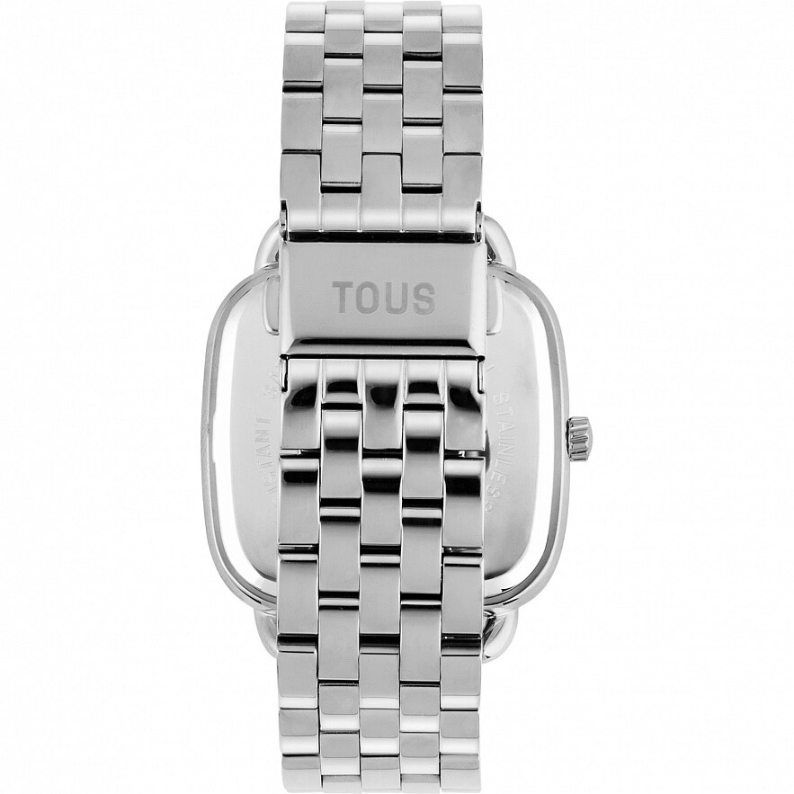 Часы TOUS D-Logo Mirror с браслетом из нержавеющей стали. Циферблат с зеркальным эффектом. Квадратное плоское минеральное стекло. Размеры: 36 мм х 36 мм. Функции: часы, минуты и секунды. Водонепроницаемость до 3 АТМ. Батарейка: 1,55 В, оксид серебра SR626SW / 0,3 грамма. Калибр: Miyota 2023. Аналоговый японский кварцевый механизм. Застежка-бабочка с кнопками.