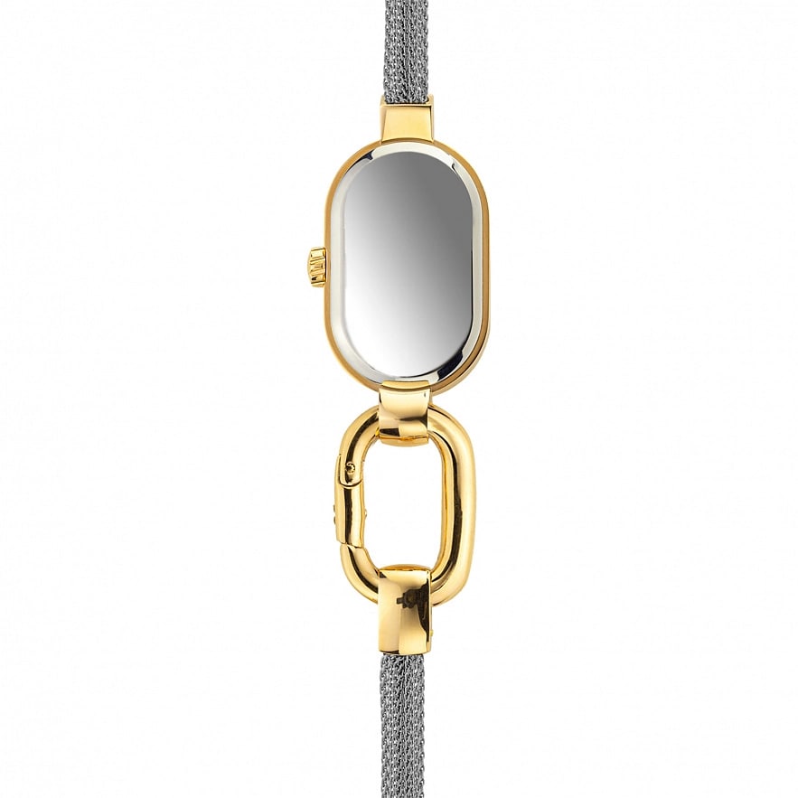 Часы TOUS Hold Oval с сетчатым браслетом из нержавеющей стали и корпусом из стали IPG золотистого цвета. Латунний металлический циферблат. Размеры: 18 мм х 28,5 мм. Функции: часы и минуты. Водонепроницаемость до 3 АТМ. Батарейка: 1,55 В, оксид серебра SR521SW/0,2 грамма. Калибр: MIYOTA 5Y20. Кристалл: овальный плоский минерал. Аналоговый японский кварцевый механизм. Ювелирная застежка.