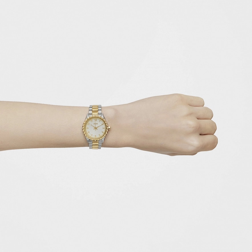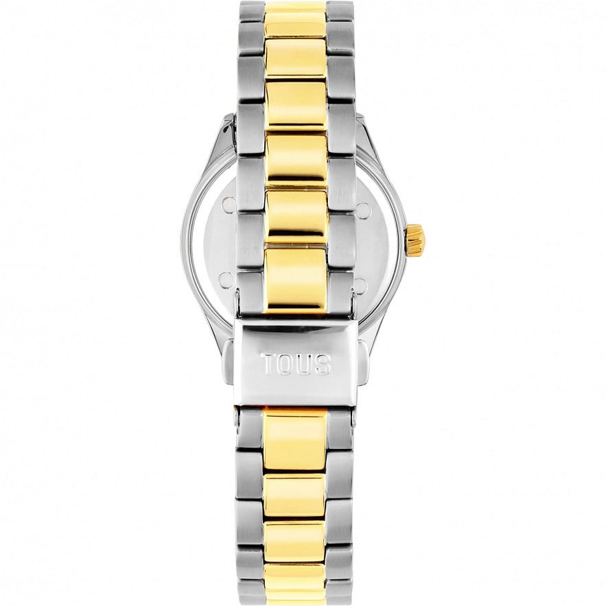 Часы TOUS Mini T-Bear с браслетом и корпусом из нержавеющей стали и IPG-стали золотистого цвета. Минерал: плоский, круглый. Диаметр: 31,2 мм. Безель с рельефными мишками. Функции: часы, минуты и секунды. Водонепроницаемость до 5 АТМ. Батарейка: 1.55 В, оксид серебра SR626SW / 0.4 грамма. Калибр: MIYOTA 2035. Японский кварцевый механизм. Застежка-бабочка.