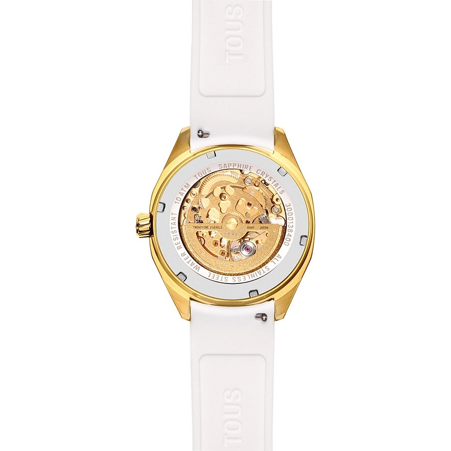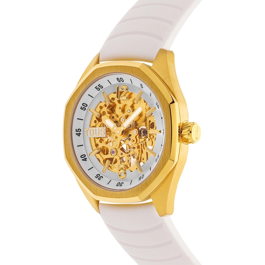 Часы с золотистым корпусом из стали с IP-покрытием и белым силиконовым ремешком TOUS Now. Функции: часы и минуты. Водонепроницаемы до 10 АТМ. Если вам нравится конструкция времени, TOUS Now Skeleton Acero — это ваш беспроигрышный выбор. Увидеть своими глазами, как работают внутренние механизмы. Не оглядывайтесь назад, пишите свою историю и демонстрируйте ее.