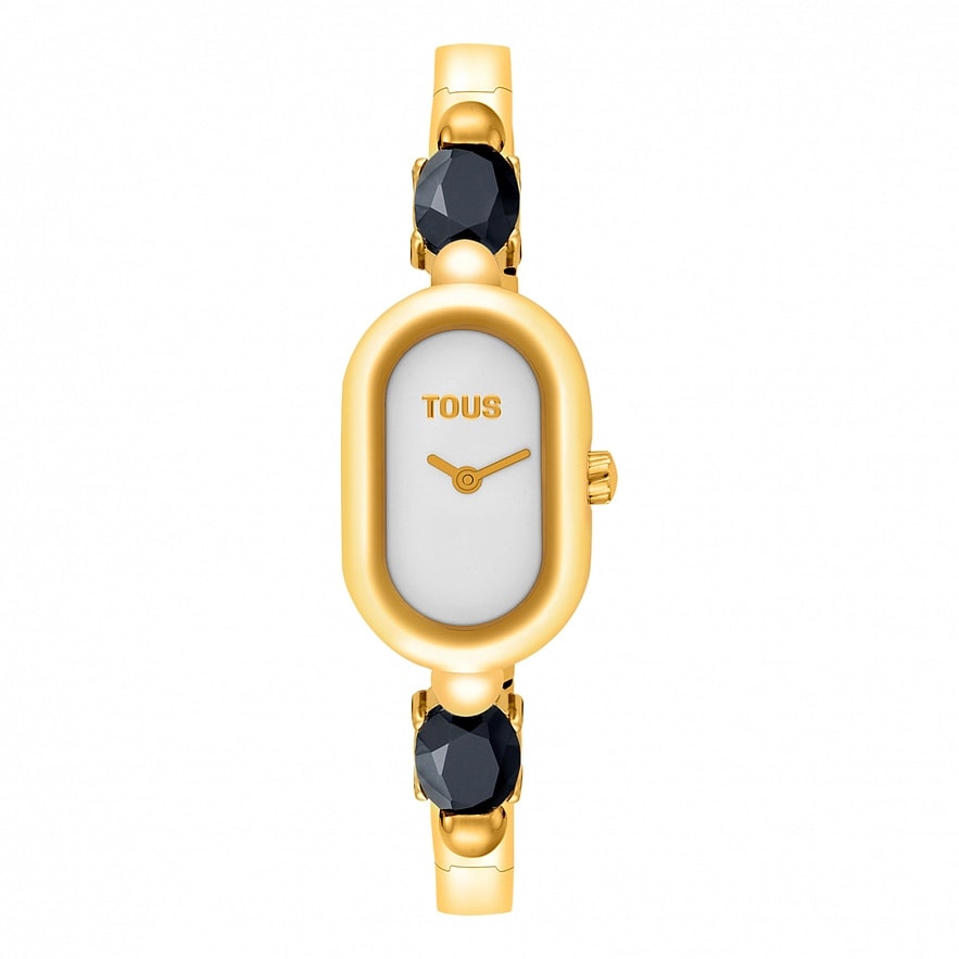 Часы TOUS Color с золотистым стальным браслетом IPG и ониксом на браслете. Часы и украшение в одном изделии. Набор из натуральных драгоценных камней, вдохновленный нашей ювелирной коллекцией. Эта линия олицетворяет сияние и элегантность. Шарикообразные крепления, удерживающие драгоценные камни, отражают стиль самых современных коллекций наших украшений. Тип механизма: Кварцевый; Функции: часы и минуты; Стекло: минеральное; Водостойкость: 3 АТМ; Материал браслета: нержавеющая сталь; Материал корпуса: нержавеющая сталь
