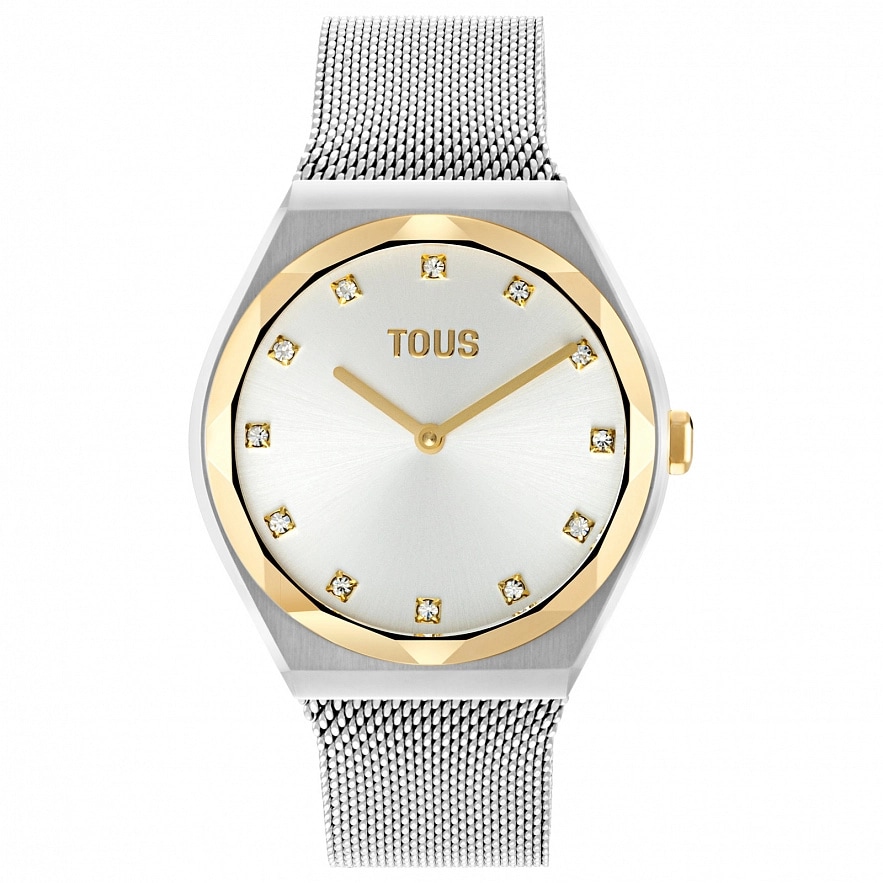 Часы TOUS Karat Round Mesh из нержавеющей стали и стальным браслетом золотистого цвета. Диаметр: 36 мм. Циферблат: с гранеными кристаллами на стрелках. Функции: часы и минуты. Водонепроницаемость до 5 АТМ. Аналоговый японский кварцевый механизм. Браслет: 20 мм х 18 мм х 70 мм / 20 мм х 18 мм х 110 мм. Регулируемая застежка из миланской сетки с защитной застежкой.
