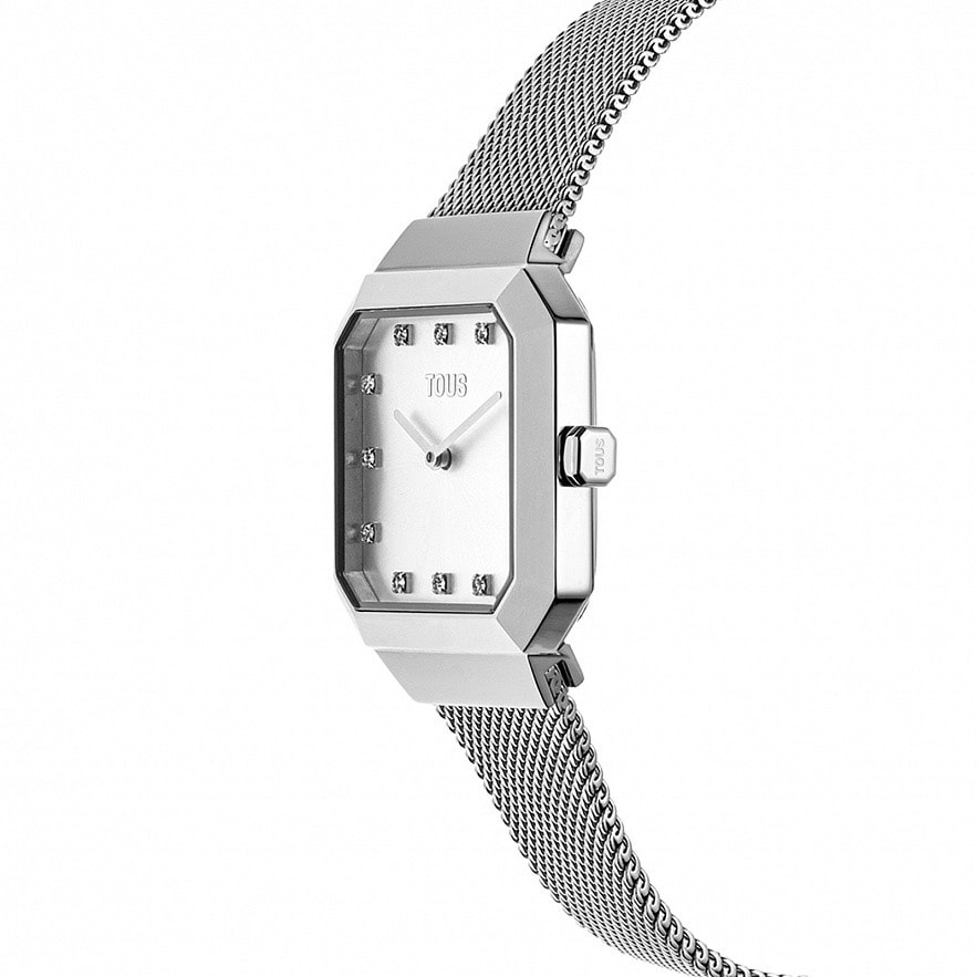 Часы TOUS Karat Squared из стали 316L. Размеры: 32 x 40 мм. Металлический циферблат с гранеными кристаллами на цифрах. Функции: часы и минуты. Водонепроницаемый при 3АТМ. Аккумулятор: 1,55 В оксид серебра SR626SW/0,30грамм. Квадратный минеральный кристалл. Японский кварцевый механизм.