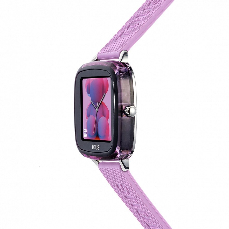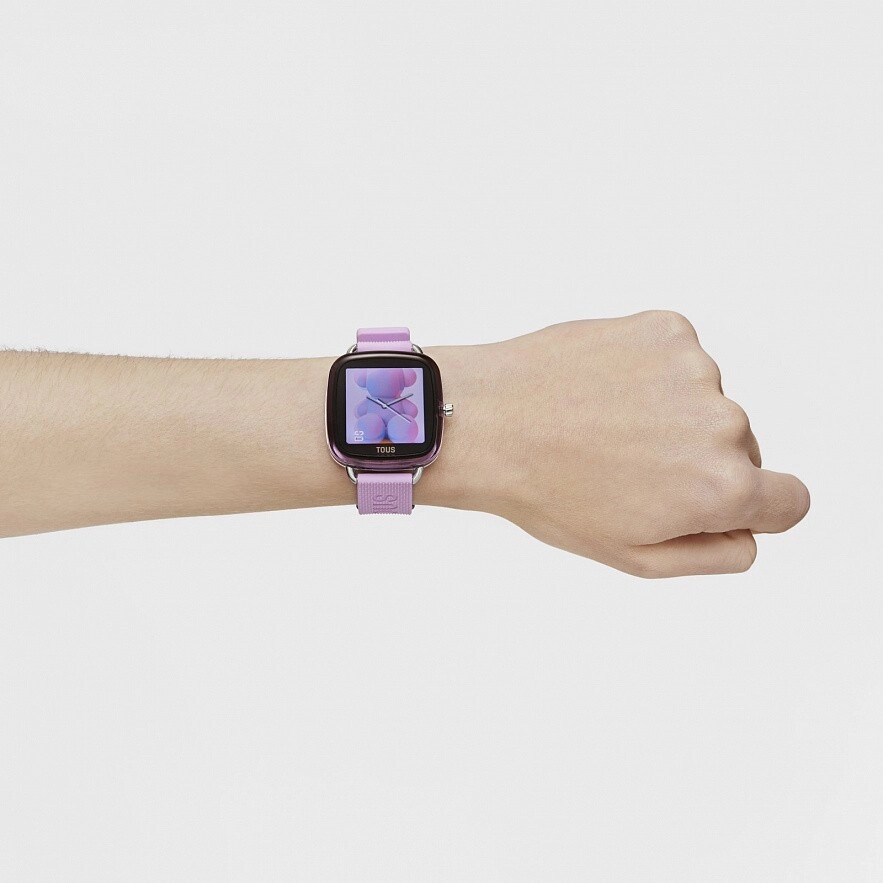Смарт-часы TOUS D-Connect с розовым силиконовым ремешком. Размеры: 38,8 мм x 39,5 мм. Совместимость с ОС: Android 7.0 и iOS 12.0 или выше. Дисплей/ ЖК-дисплей: сенсорный экран 1,40 дюйма TFT-DLC цветной (Full Touch). Подключение: Bluetooth версии BLE5.0. Оперативная память: 128kb Аккумулятор: 180mAh, литий-ионный аккумулятор 3,8 В/2,9 г, перезаряжается с помощью магнитного кабеля, 5-7 дней в работе и 8-10в режиме ожидания. Чипсет: Realtek RTL8762CK и пульс: HRS 3300. Водонепроницаемость: IP68. Функции: 8 циферблатов TOUS + 4 сменные циферблаты из приложения TOUS WEAR, часы, минуты, месяц, день, день недели, ежедневная активность со счетчиком шагов, счетчик калорий и пройденного расстояния в милях или километрах, спорт (ходьба, бег, беговая дорожка) , верховая езда, тренажер, йога, фитнес, гребли, спиннинг, езда на велосипеде, теннис и прыжки), пульс, мониторинг сна, артериальное давление, уровень кислорода в крови, информация о погоде, секундомер на 1/10 секунды, управление музыкой, поиск телефона и управлени