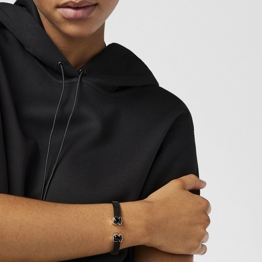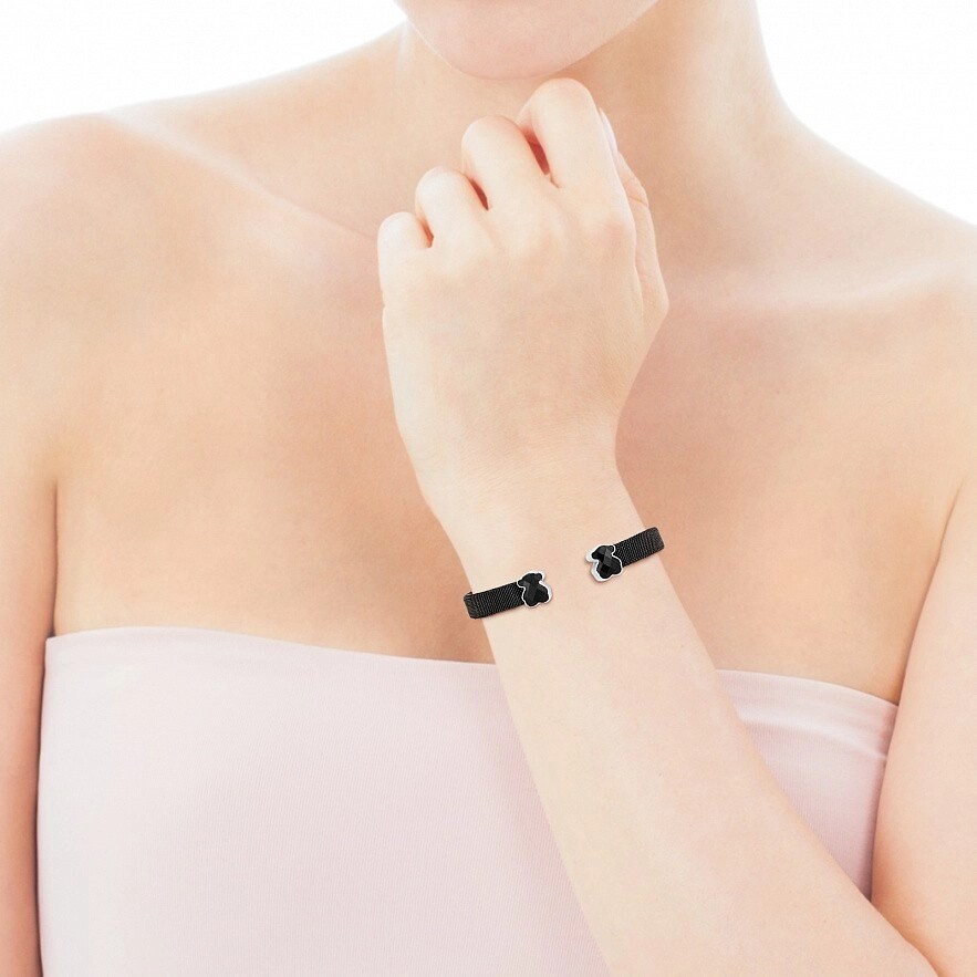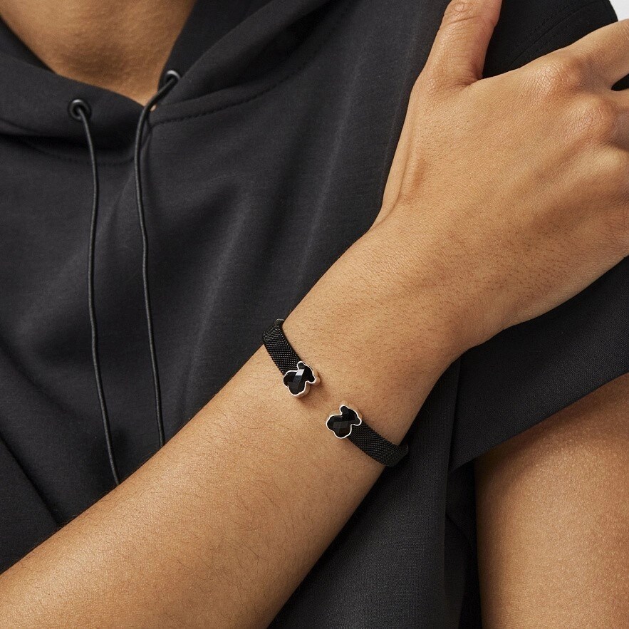 Браслет TOUS Mesh Colorиз стали с черным IP-покрытием, с 2 вставками из оникса, в серебре 925 пробы. Размер вставки: 1,1 см. Ширина браслета: 8 мм.