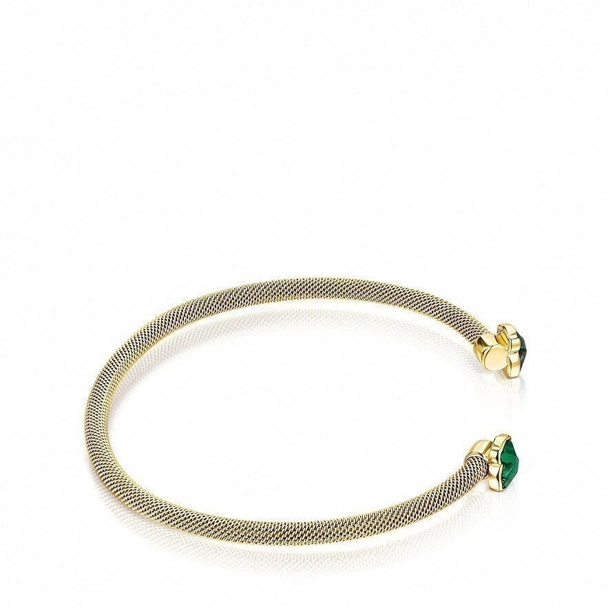 Браслет TOUS Mesh Color из стали с желтым IP-покрытием, с 2 вставками из малахита, в серебре 925 пробы с покрытием Vermeil . Размер медвежонка: 0,6 см. Ширина браслета: 3 мм. Vermeil : серебро с покрытием желтого золота 18kt.