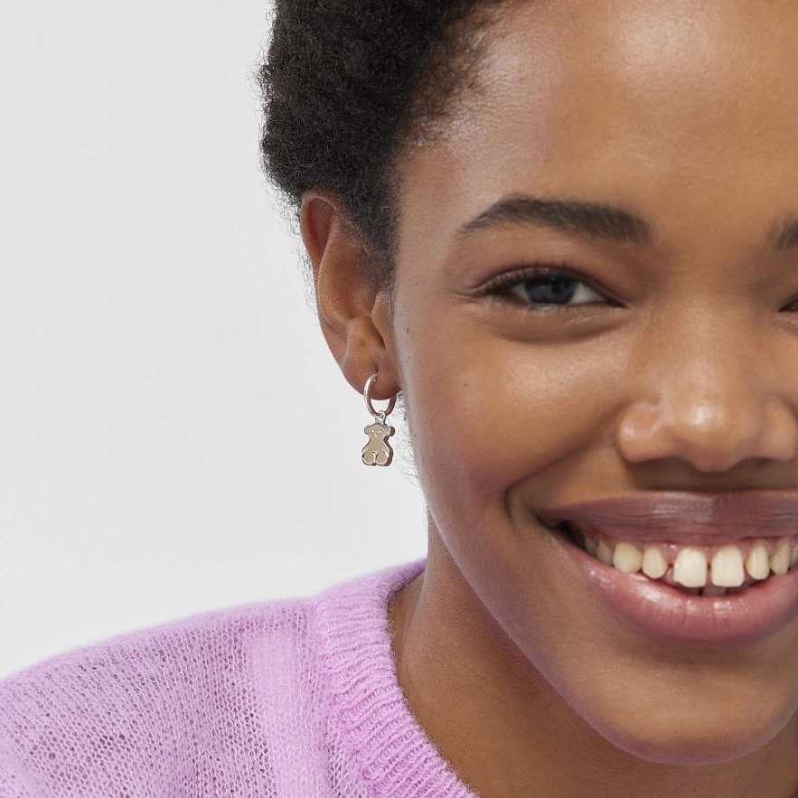 Серьги-кольца TOUS Sweet Dolls из стерлингового серебра. Размер серег: 1,15 см. Каталонская застежка. Техника изготовления: Литье.