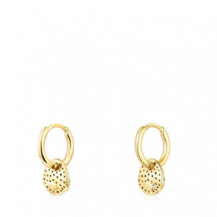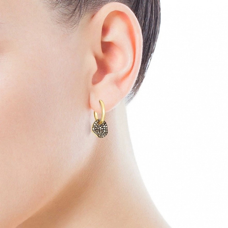 Серьги-кольца TOUS Nenufar из серебра 925 пробы с покрытием Vermeil с бриллиантами одинарной огранки светло-коричневого цвета размером 0,40 карата, L / I. Размер лепестка: 9 мм. Застежка кольцом. Vermeil : серебро с покрытием золота 18 карат.