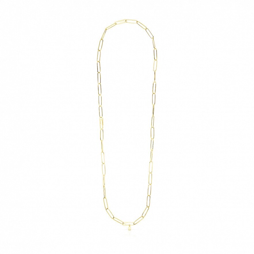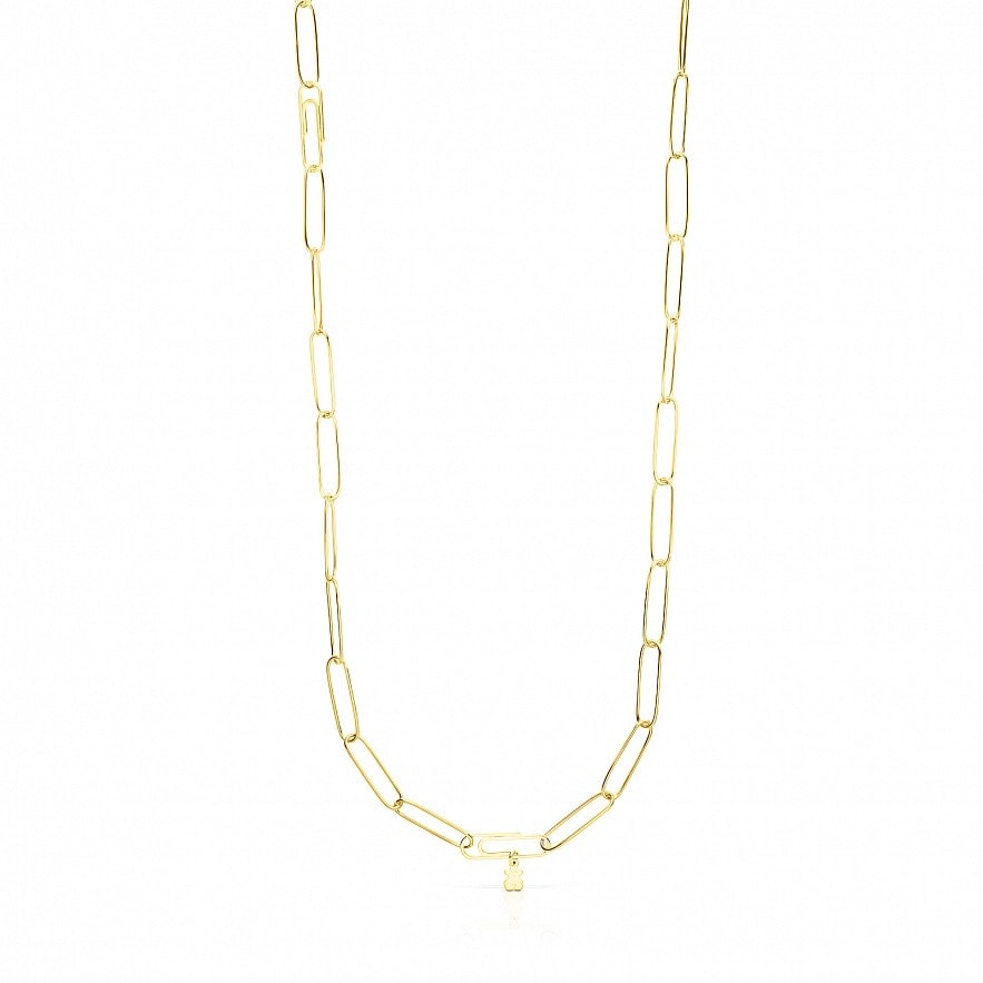 Серебряное ожерелье TOUS Good Vibes с покрытием жолтого Vermeil с овальными кольцами 2,1 см. Общая длина колье: 80 см. Vermeil : Серебро высшей пробы, покрытое тонким слоем желтого золота 18 карат.
