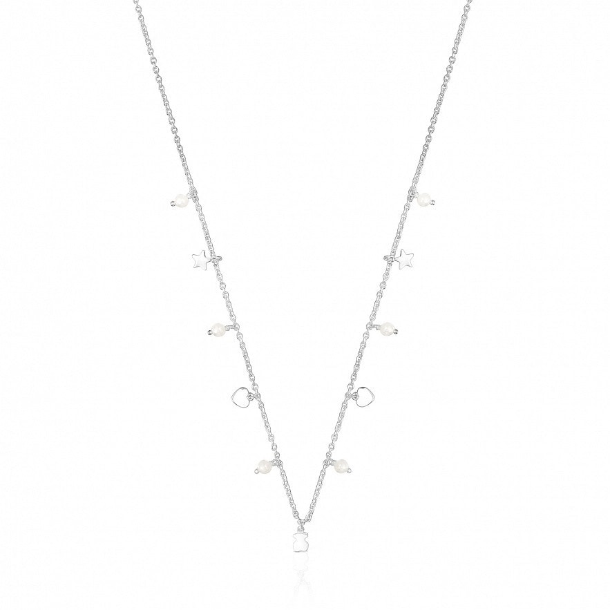 Колье TOUS Cool Joy из серебра 925 пробы с разными мотивами размером 3.5 mm (звезда, сердце, медведь) и жемчужинами ø3 mm. Длина: 45 cm.