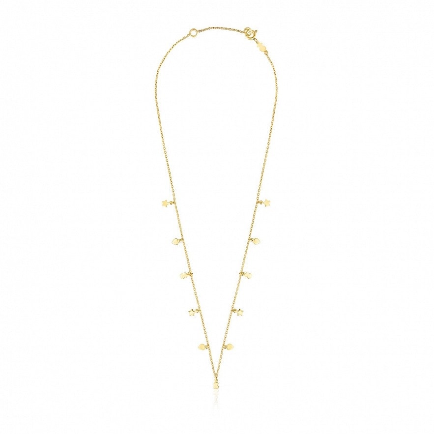 Ожерелье TOUS Cool Joy из серебра 925 пробы с покрытием Vermeil . Подвески на цепочке — символы: звезда, сердце, медвежонок размером 0,35 см. Длина регулируется: 43 см, 40 см. Vermeil : серебро с покрытием золота 18 карат.
