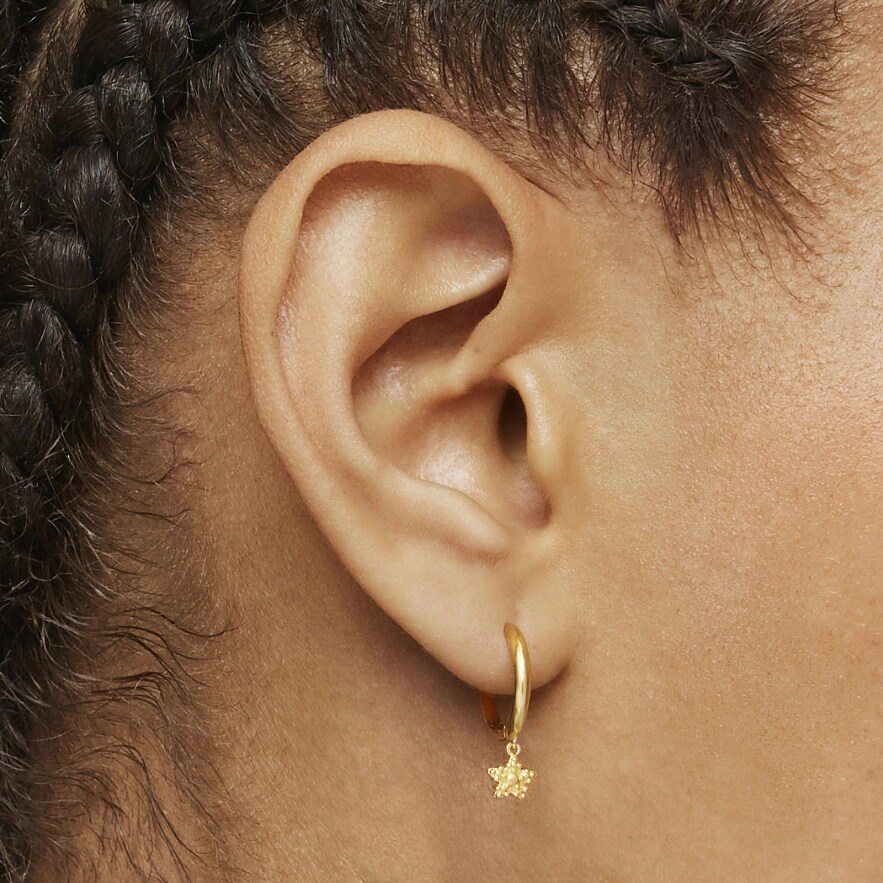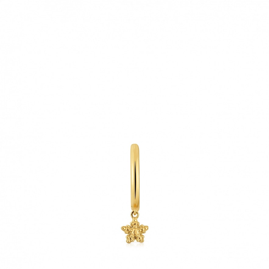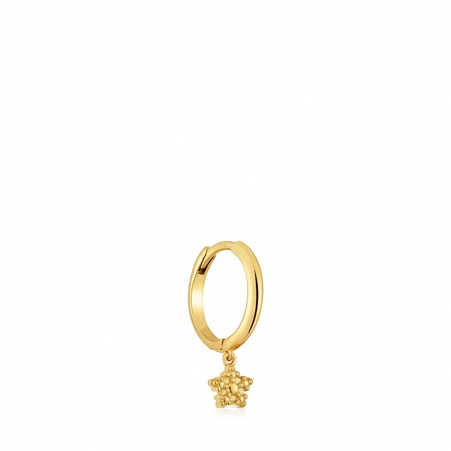 Серьга TOUS Grain с покрытием из 18-каратного золота поверх серебра и подвеской в форме звезды с мотивом TOUS Grain. Размер серьги: 10 мм. Размер мотива: 5,1 мм. Изделие выполнено из стерлингового серебра с золотым напылением от 18 до 23 карат толщиной 3 микрона. Такое качество гарантирует большую долговечность украшения.