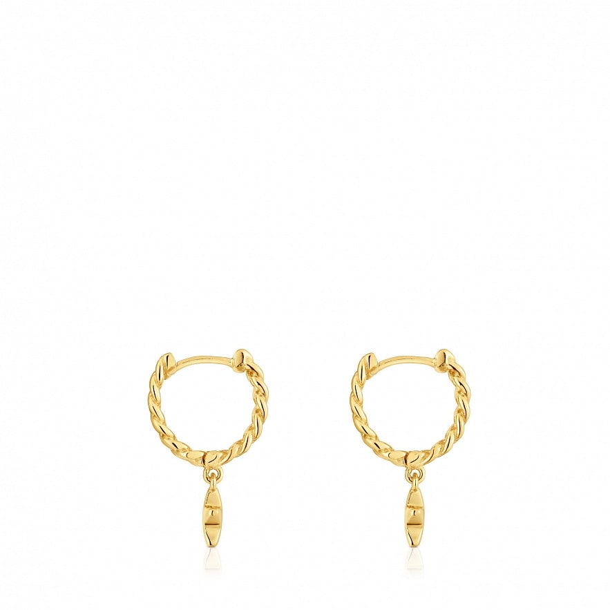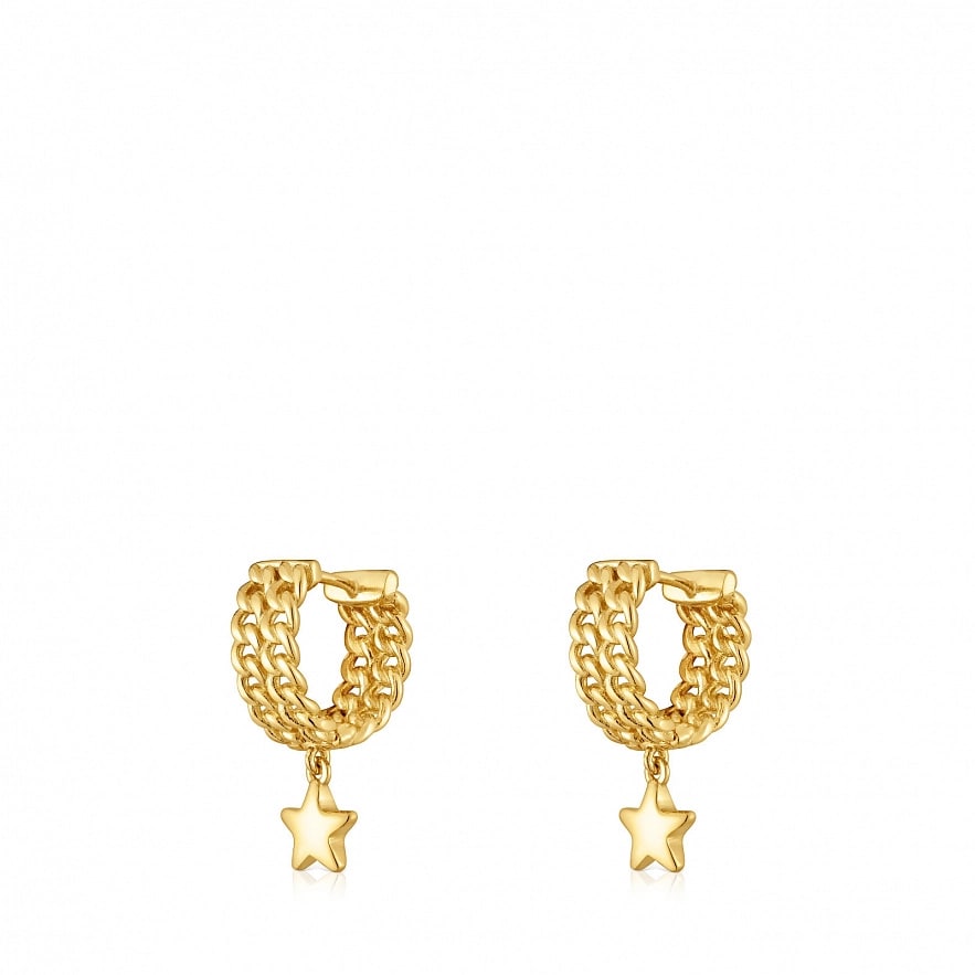 Серьги-кольца Bold Motif из серебра 925 пробы с покрытием Vermeil и мотивом звезда. Ширина кольца: 6 мм. Диаметр кольца: 10 мм. Размер мотива: 6 мм.