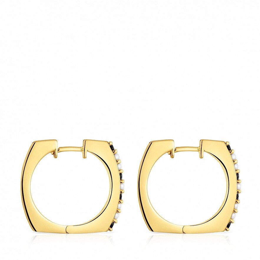 Серьги-кольца TOUS Basic Colors из серебра 925 пробы с покрытием Vermeil , шпинелью 2,2 мм и культивированными жемчужинами 2-3 мм. Размер серьги: 17 мм. Изделие изготовлено из серебра 925 пробы с позолотой от 18 до 23 карат и имеет толщину 3 микрона. Такое качество гарантирует большую долговечность украшения.