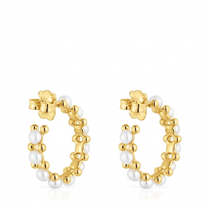 Серьги-кольца TOUS Gloss из серебра 925 пробы с покрытием Vermeil , с тремя полосками, по центру полоска из культивированного пресноводного жемчуга. Размер культивированного жемчуга: 4 мм. Диаметр серьги: 20 мм.