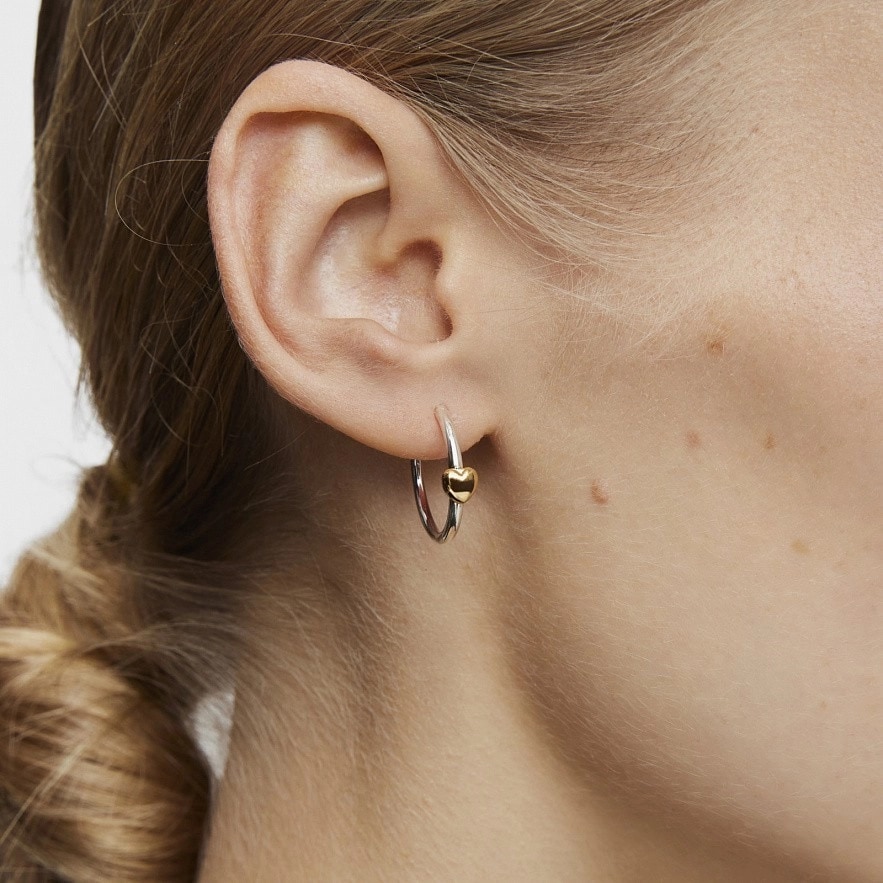 Серьги-кольца TOUS My Other Half двухцветные из серебра 925 пробы и с мотивом сердце из серебра 925 пробы покрыто золотом 18 карат.