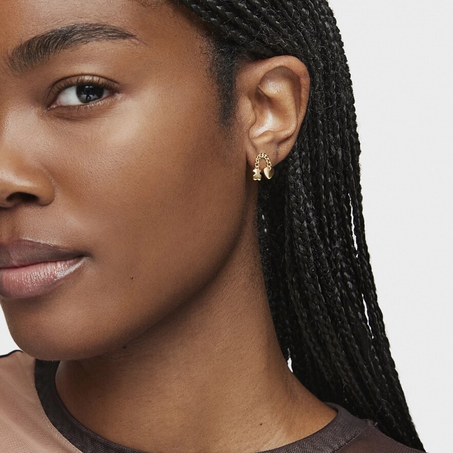 Серьги TOUS Bold Motif из серебра 925 пробы с покрытием Vermeil . Мотивы: мишка и сердце. Длина сережек: 14 мм. Размер мотивов: 5,6 мм.